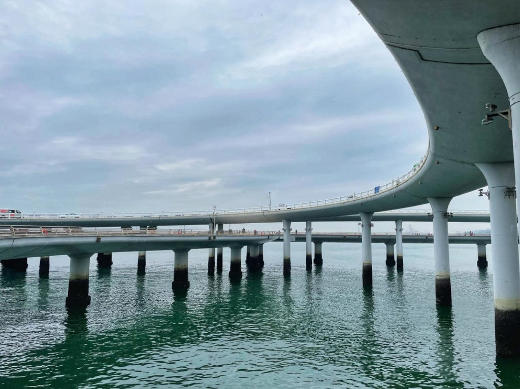 演武大桥这边有一个观景台。这个观景台可以上去,从观景台走过去之后,可以看到多个角度的演武大桥。在桥边还看到好几个孩子玩耍。顿时觉得,在南法生活也是极好的,起码不用忍受寒冬的寒冷。