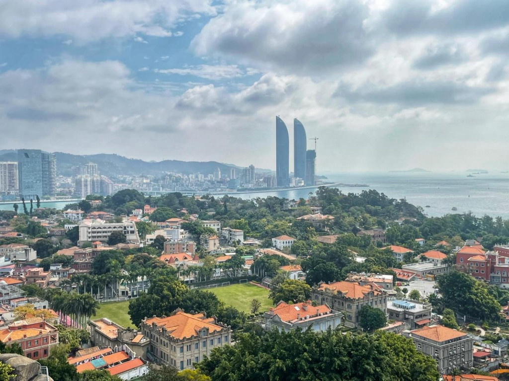 之后,我们打卡了双子塔。这边有下午傪好,里面有百香果汁,蓝莓汁什么的。果汁还是很浓郁的,不过价格也不便宜。就记得其中点了一份苏打水,竟然30多块钱。不过,双子塔的视野还是很美的。站在塔上,不仅可以看到远处的大海,甚至,连鼓浪屿都尽收视野。