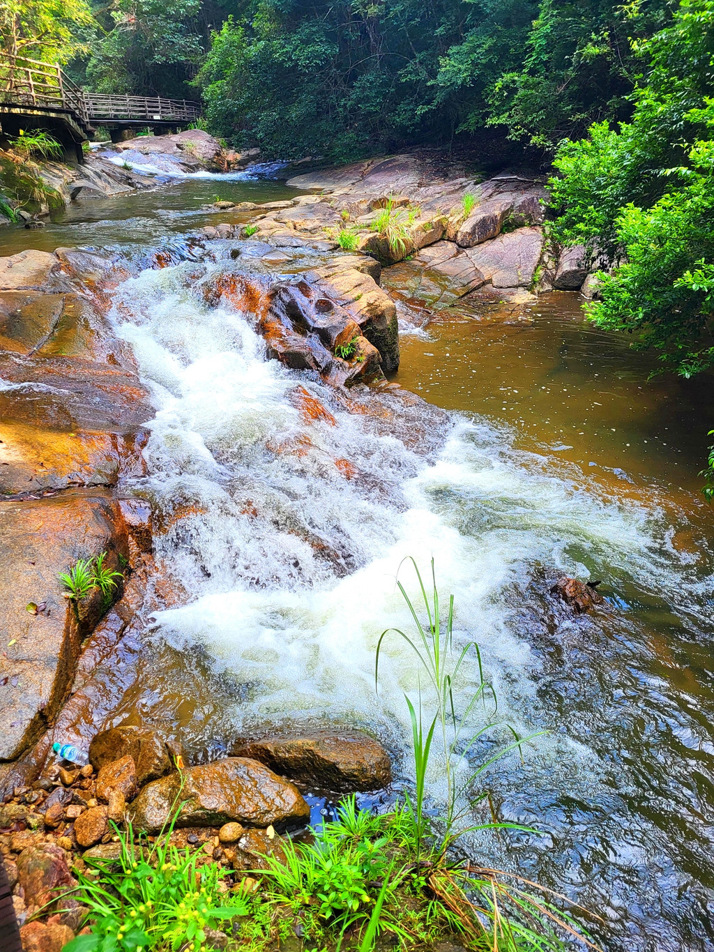 2、上、下梁野瀑布可分别前去游览,都需要爬一些台阶。仙女湖建有环湖栈道,沿着栈道边走边逛环湖一周才1小时左右。