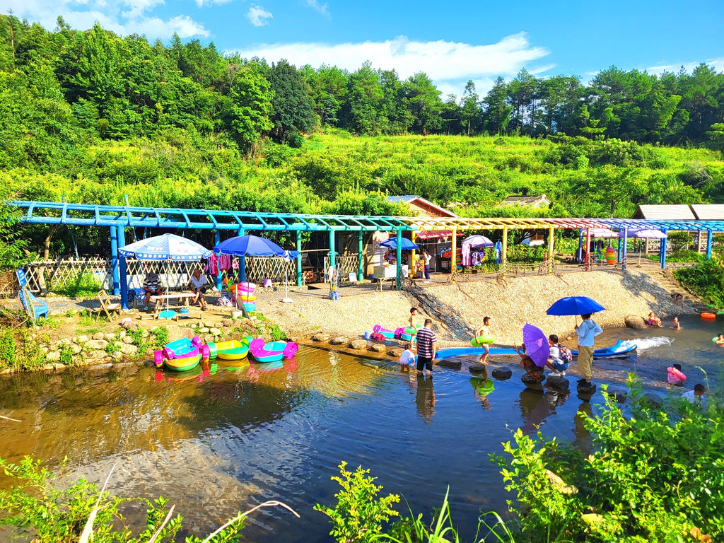 位于梁野山旅游区里的云寨村,是近几年才被人们发掘出来的避暑康养之地。虽然这里只是一处山区的小村庄,近年来趁着新农村建设的热潮,新建了许多民居、整修了村道、配套了娱乐场地、完善了停车场等基础设施建设,家家户户都经营起民宿客栈或食肆小店。到了夏天,游客纷至沓来,有一日游的,有小住三几天的,有住上一星期半个月的,有甚至整个夏天都长住在这里的。大家尽情享受着这里高含氧量的新鲜空气和清丽可人的田园风光,好不惬意。这也从另一个侧面印证了这里的宣传口号和广告“来武平我氧你”。