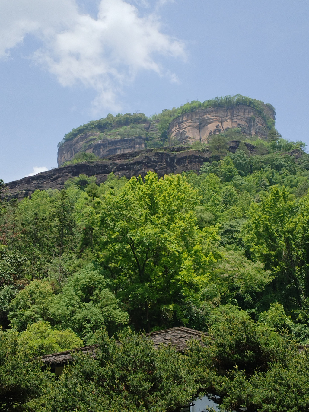 至于武夷山的其它山峰,阿李没有登临。只是在去天游峰的路上和返回的路上,我们两次从仙掌峰(又名晒布岩)和隐屏峰的山麓经过。后来阿李去了武夷宫。在那里,站在花开满树的梧桐下,阿李仰望了大王峰的威仪;然后走到九曲溪边,阿李低头欣赏缓缓流淌的清波,抬头欣赏大王峰右侧幔亭峰的雄姿,再远远瞻仰了二曲溪边的玉女峰的玉容。