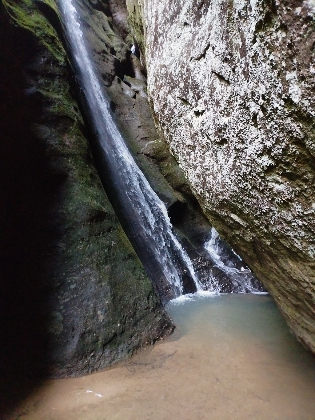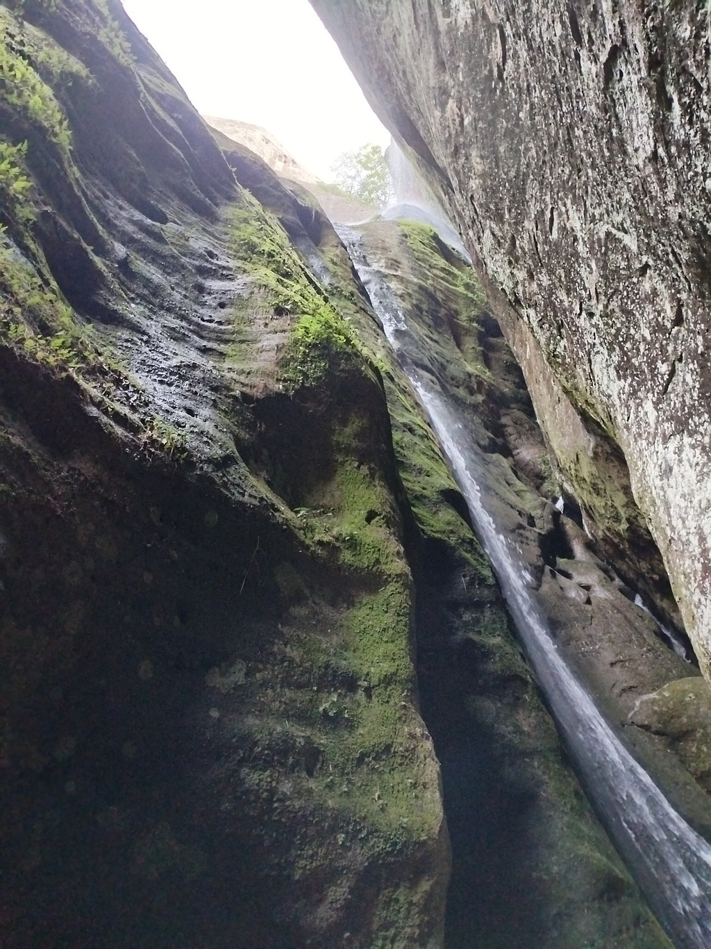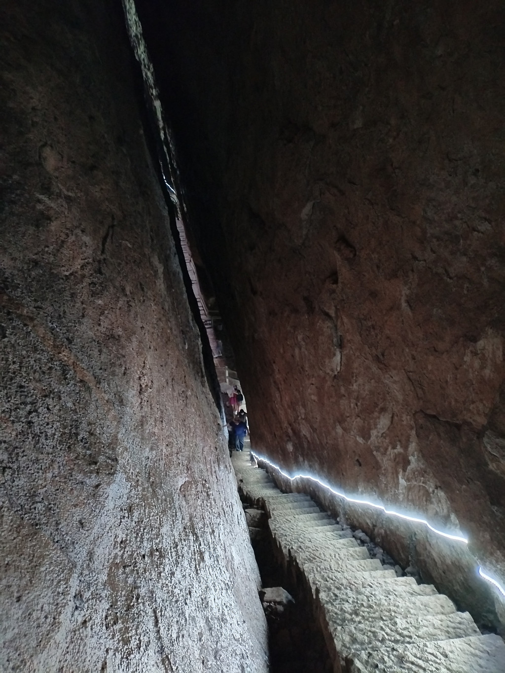 阿李认为,太姥山中最险的花岗岩洞是一线天。阿李在武夷山中爬过一线天,轻松通过。到了太姥山,再过一线天,阿李发现自己很难直面而行,只有侧着身才能艰难通过。太姥山的一线天不仅狭窄,而且很长,很高,里面还很黑,需要摸索着前进——稍不注意,不是头撞上了花岗岩壁,就是膝盖被岩壁顶住了。要想通过,不仅要侧着身,还要低下头弯下腰。