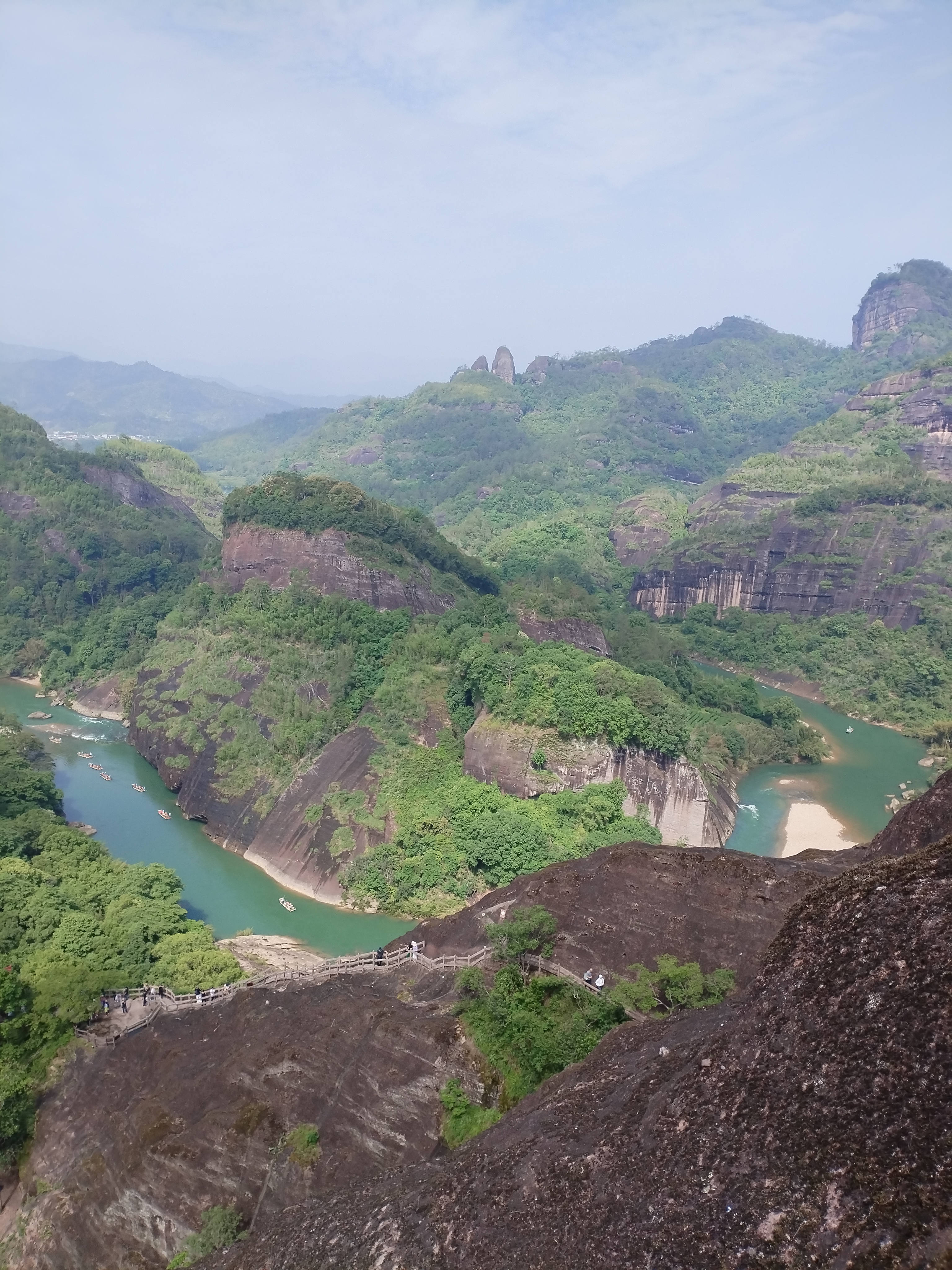 而二曲溪旁的虎啸岩,阿李原本是要去的,甚至已经乘坐景区交通车,到了虎啸岩景区入口。可景区工作人员说,上去下来至少需要两个小时!当时是下午三点半,阿李已爬过天游峰,逛了武夷宫及其周边,通过了一线天的考验,膝关节已隐隐作痛。旅游搭子们都说上下山时间太长了,不去了,阿李也就不去了——幸亏没有去,一位上了虎啸岩的团友后来告诉阿李:上去和下来至少要三个小时。