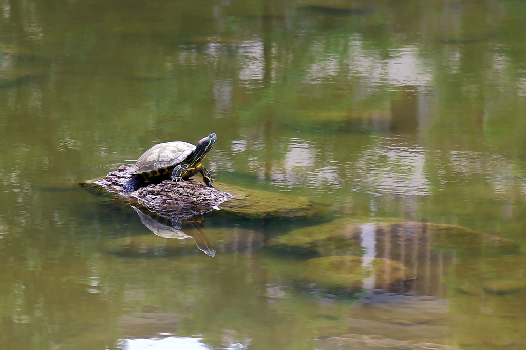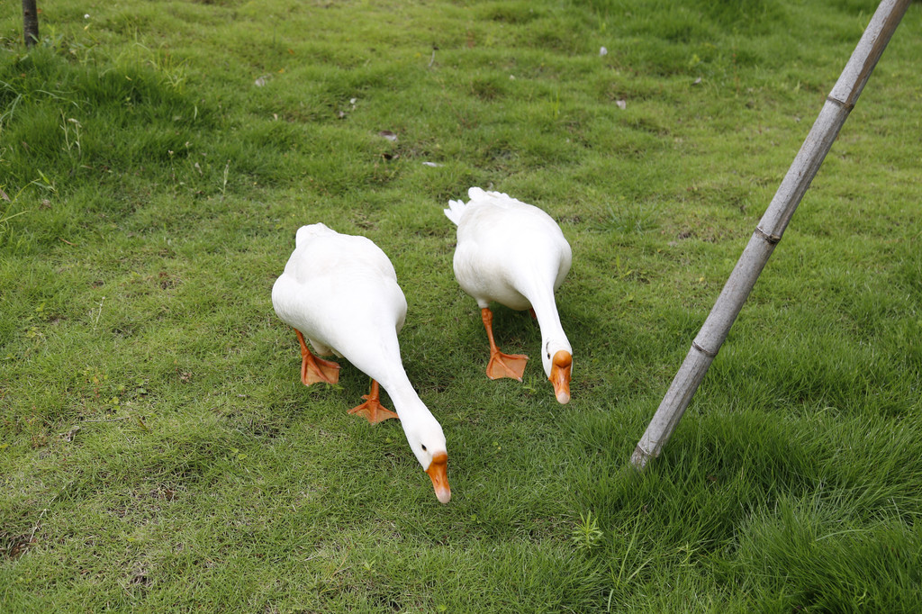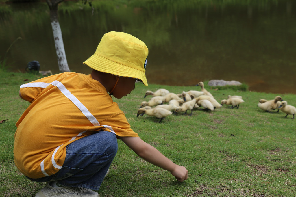 从大堂出去后忽闻“嘎嘎”欢鸣——池塘畔白鹅曲项高歌,白鸭摇摆列队,草龟在石头上慵懒晒着夕照。孩子用面包屑引得小鸭围转,乌龟在石板上晒太阳,林间传来画眉清啼。在这里,动物与人的界限被温柔融化。
