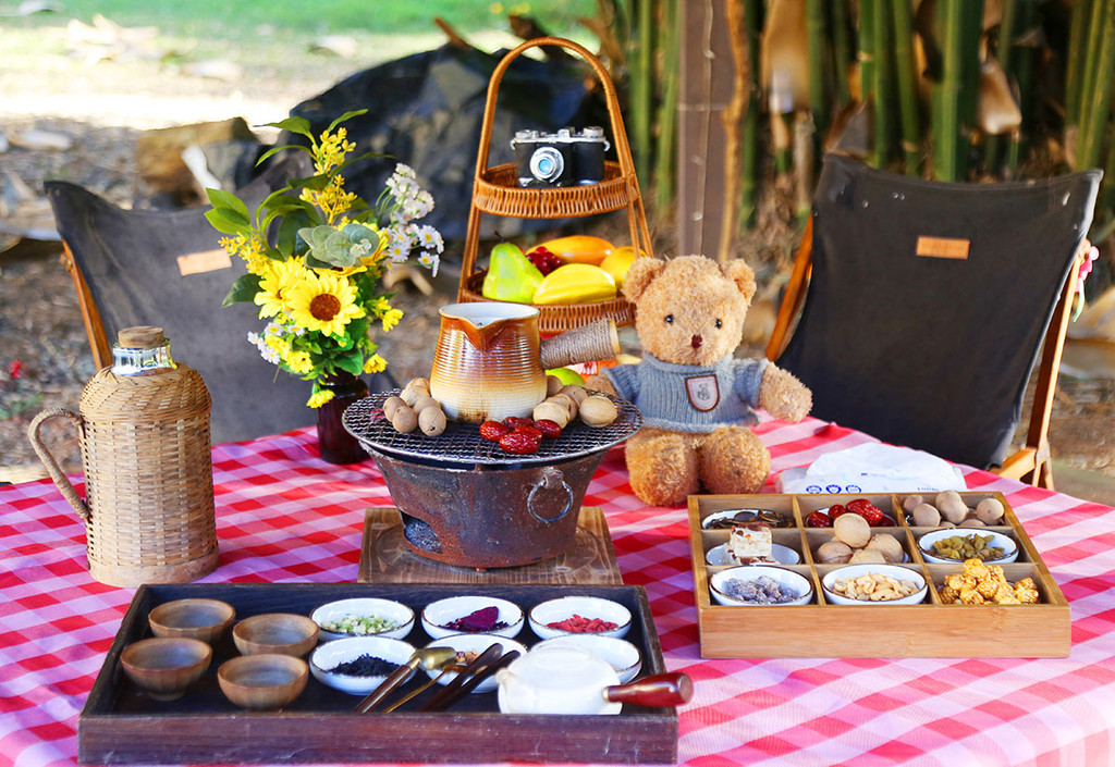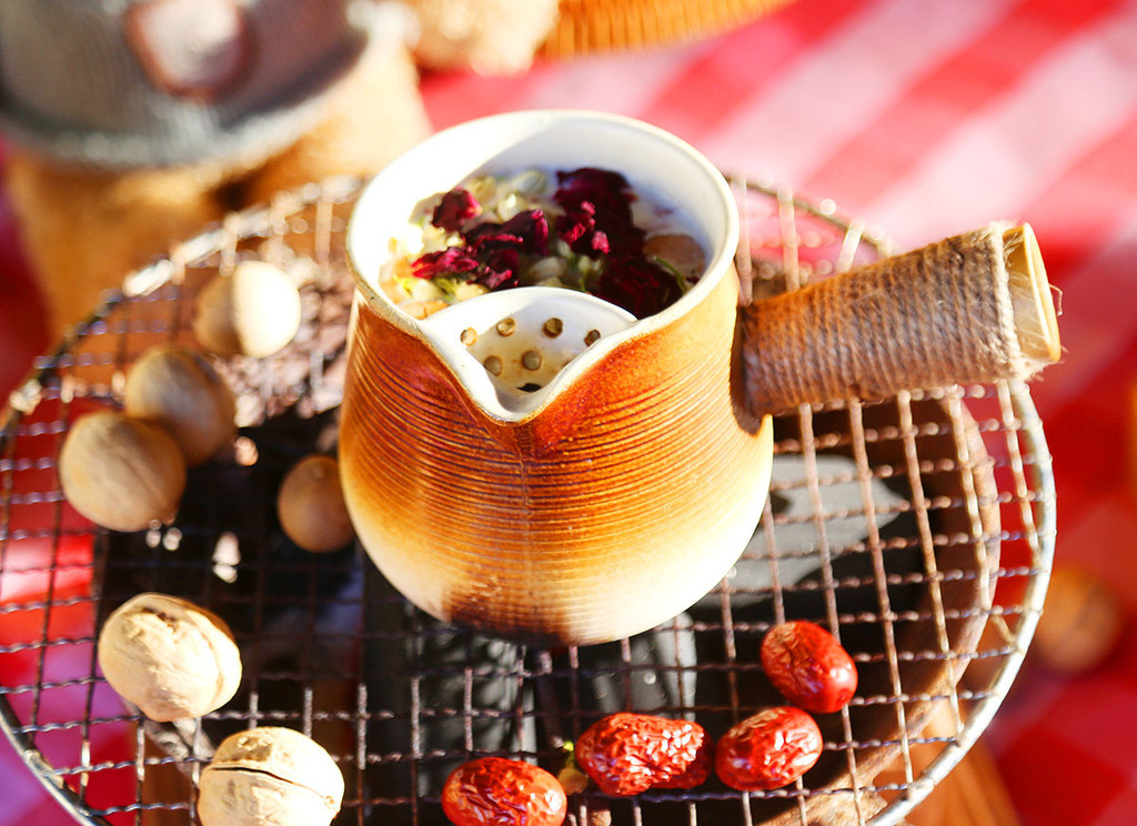 下山后在渐凉的秋风中,我们体验了最富诗意的 “围炉煮茶” 。红泥小炉里炭火正旺,架上一个陶壶,看着水汽袅袅蒸腾。壶中的茶汤滚了,倒入杯中,香气扑鼻。孩子们则忙着烤桂圆、红枣和花生,小脸被炉火映得红扑扑的。我们喝着茶,闲话家常,看天边的晚霞由绚烂归于平淡,再换上满天星斗。这一刻,时光仿佛被拉长了,宁静而圆满。