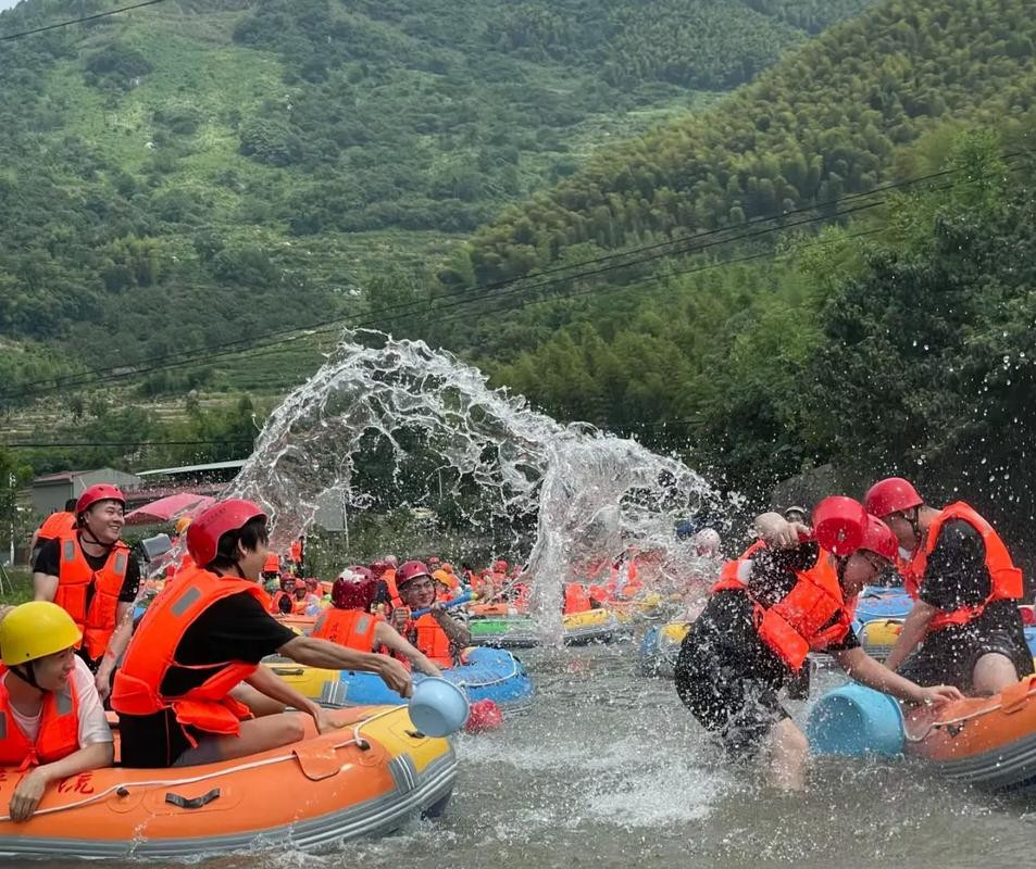 平缓河段就是打水仗的天下!提前网购的水枪、水瓢派上大用场,我们刚“装备”好,旁边艇的小朋友就朝我们泼水,一场混战直接开启,笑得肚子痛。河道两边全是密不透风的竹林,阳光晒不进来,空气里都是草木香,偶尔还能看到小松鼠从竹林里窜过去,太有野趣了。