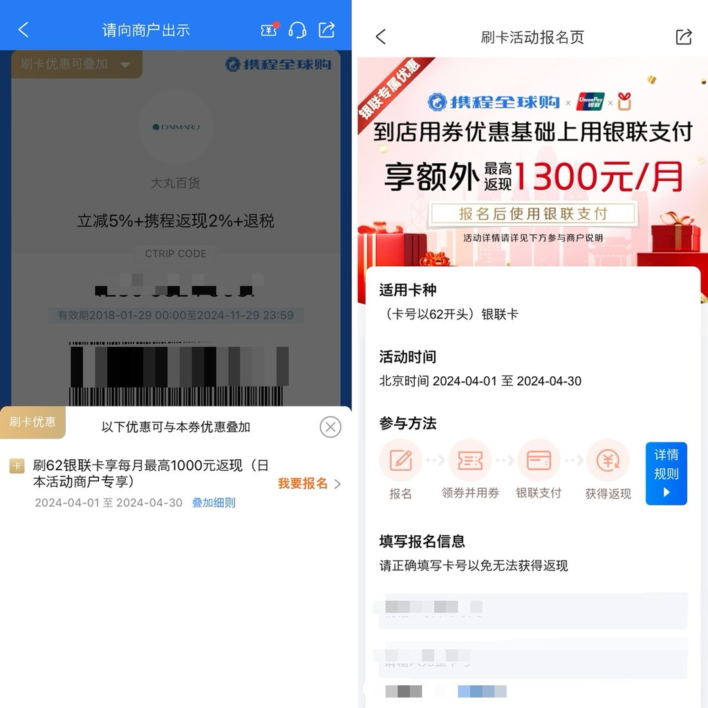 感觉这就是个全民活动,只要用62银联卡消费就可以参加的活动,必须用起来呀,能撸的羊毛一样不落下。友情提示,这个活动需要提前在携程的【博多大丸百货(福冈天神店)】报名哦。
