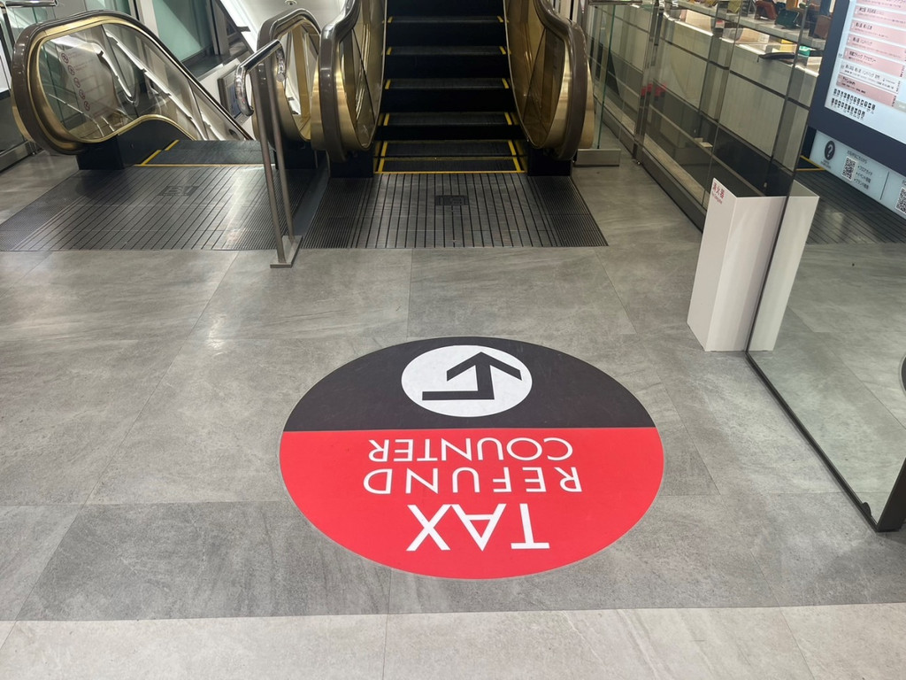 退税的地方在【福冈大丸本馆B1层】,带着自己买的东西和购物小票直接去退税就好,地上有地标方便找到,如果人多或者觉的累了还可以在退税柜台对面的沙发上坐着等。