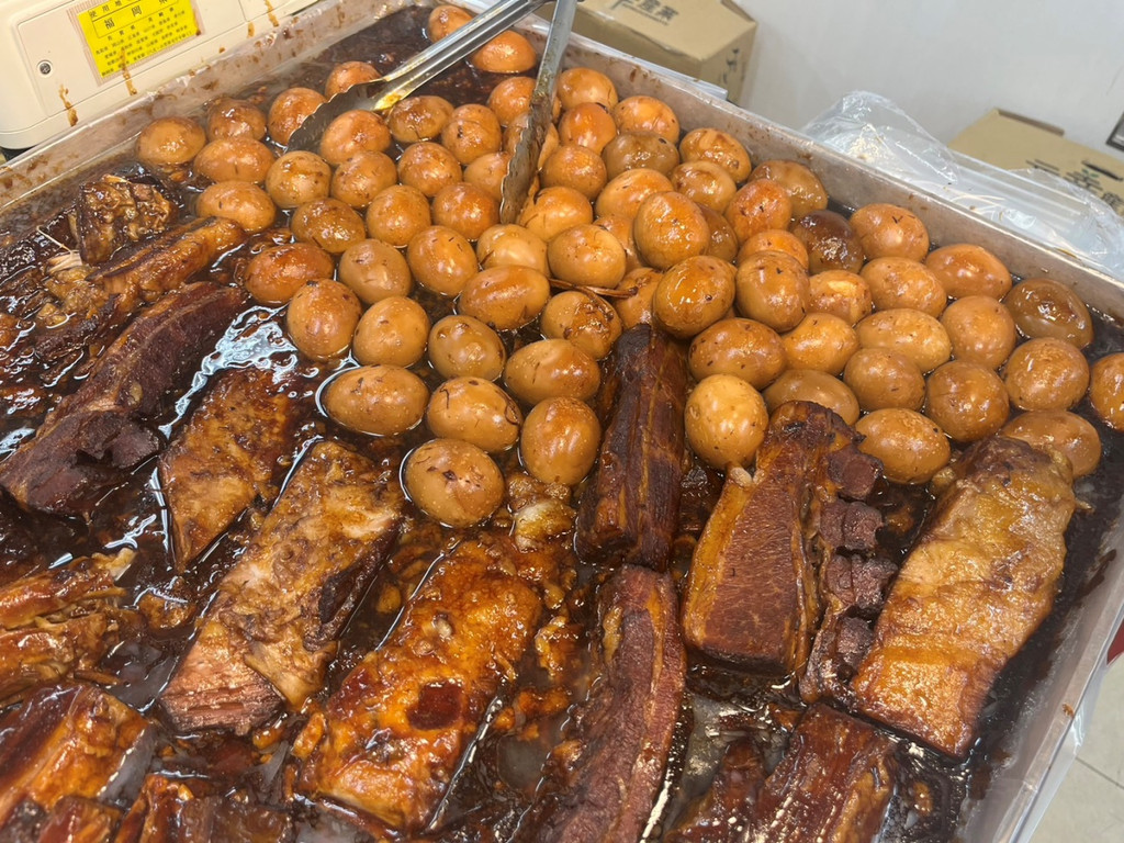 现场制作的烧鸟很远就能闻到香味儿,这一大锅炖肉卤蛋让我觉的手头上现在就缺一块烤面饼,把肉剁剁加上卤蛋做成白吉馍夹肉。