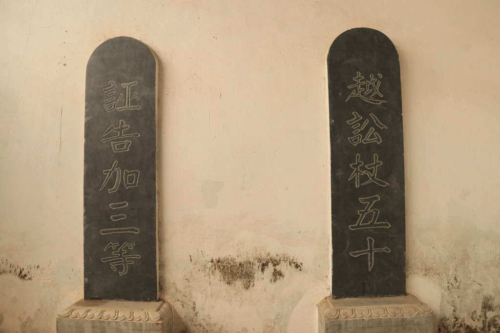 明间背檀坊下书有“钦加同知衔,赏戴花翎权知浮梁事张,毛公建” ,钦赐五品,为中国品位最高的县衙。