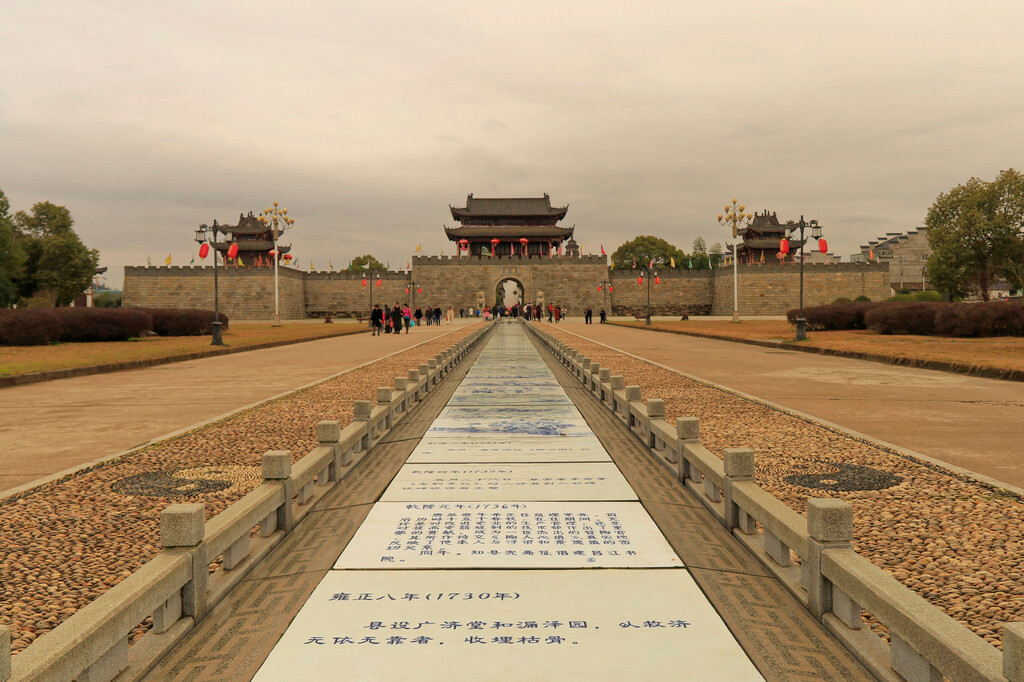 以贴地瓷砖建设的历史文化长廊,长312米,由216块青花瓷板铺就而成,综述了浮梁的概况以及源远流长的官文化、瓷文化和茶文化,记载了浮梁一千三百多年要事珍闻和浮梁作为瓷都之源的发展历程。