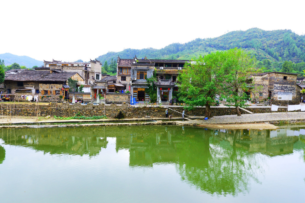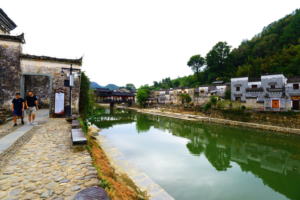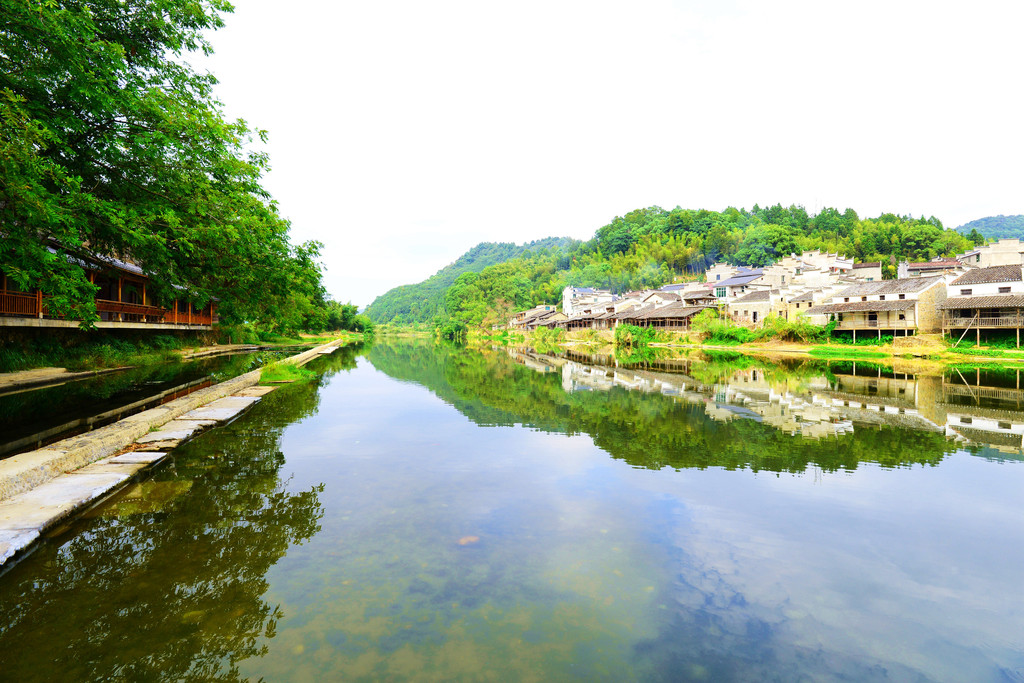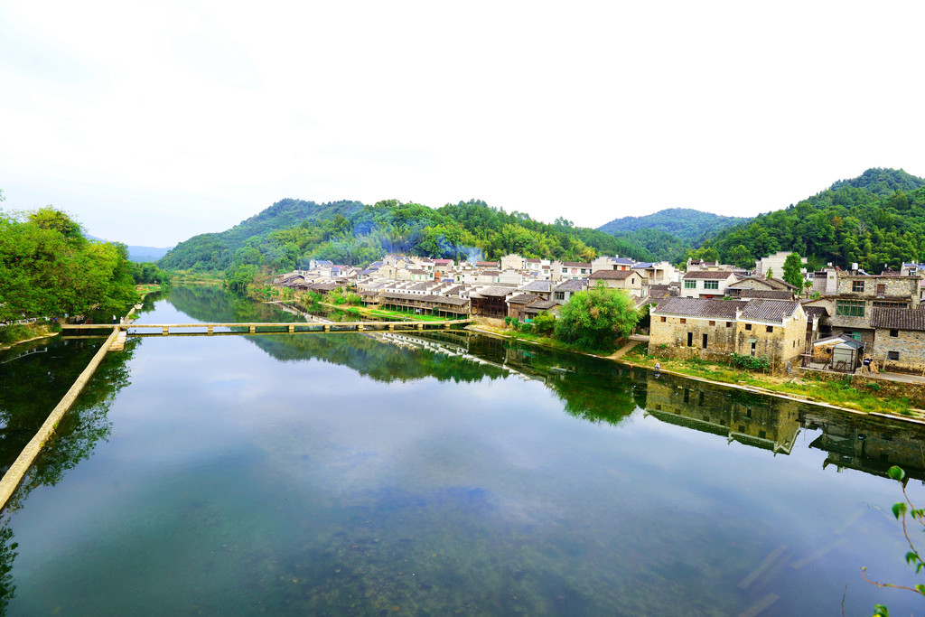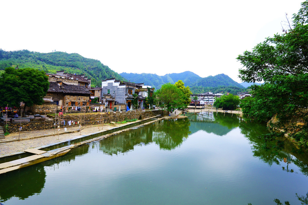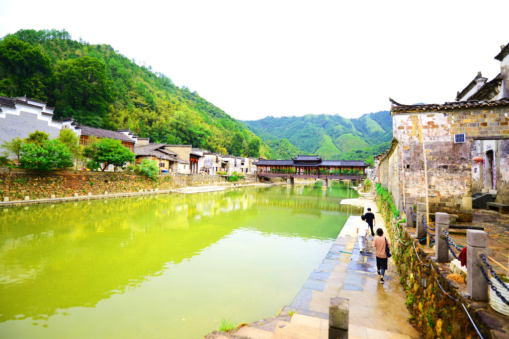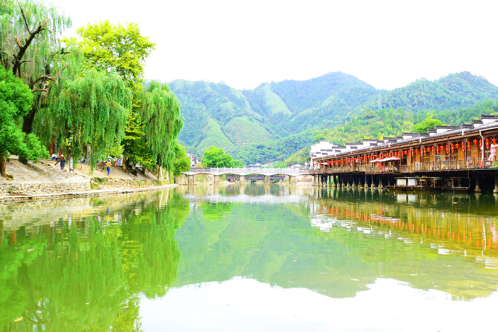 镇子是一河两岸的格局,一汪碧水映青山,徽派建筑掩映在青山绿水中,宛如一幅画卷。