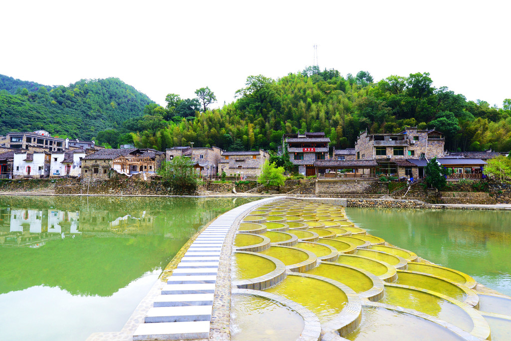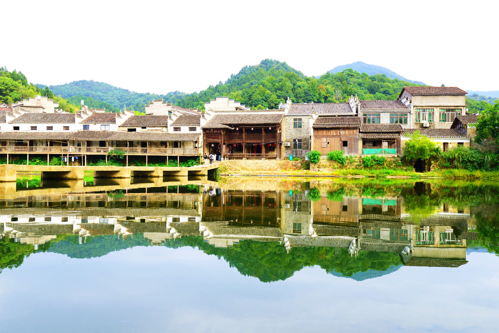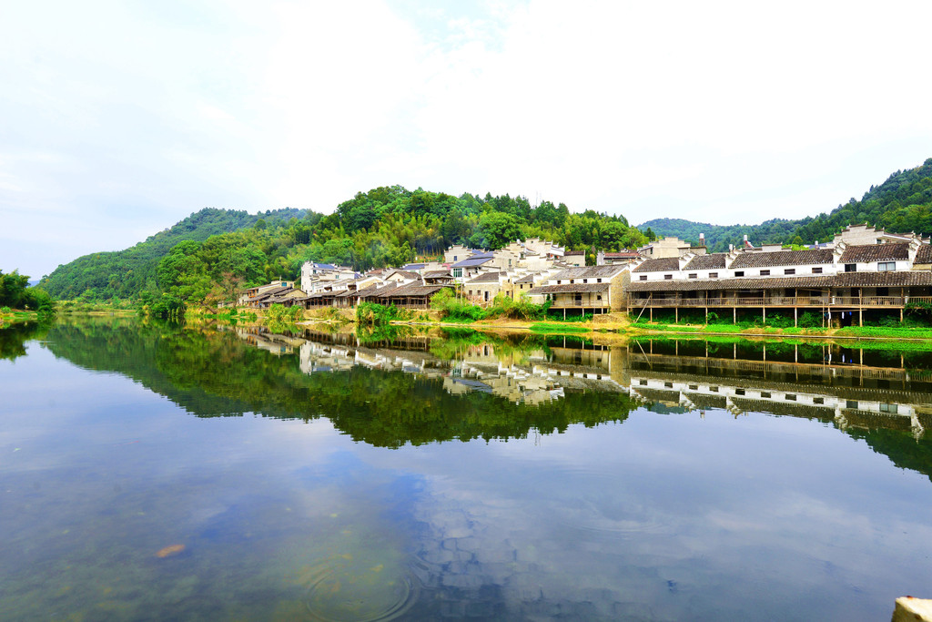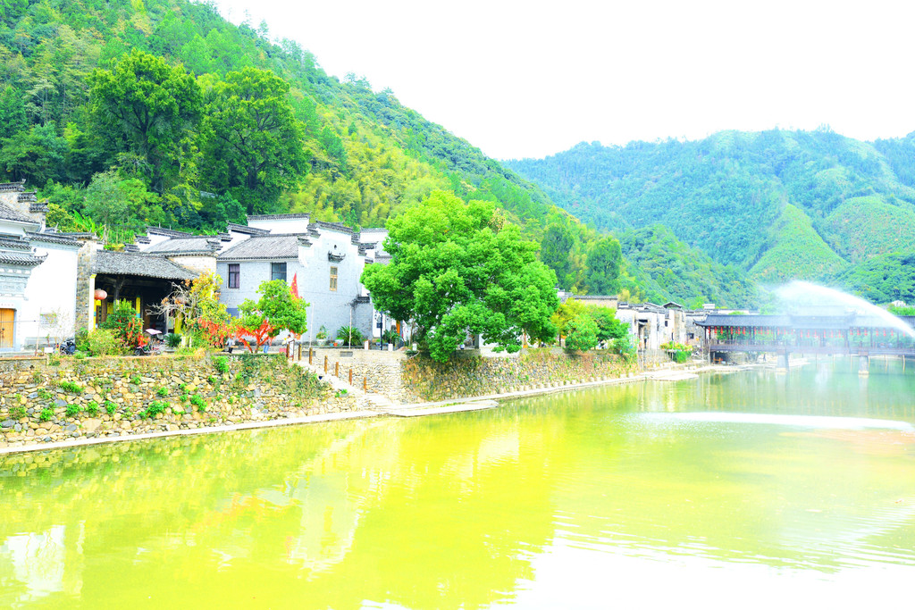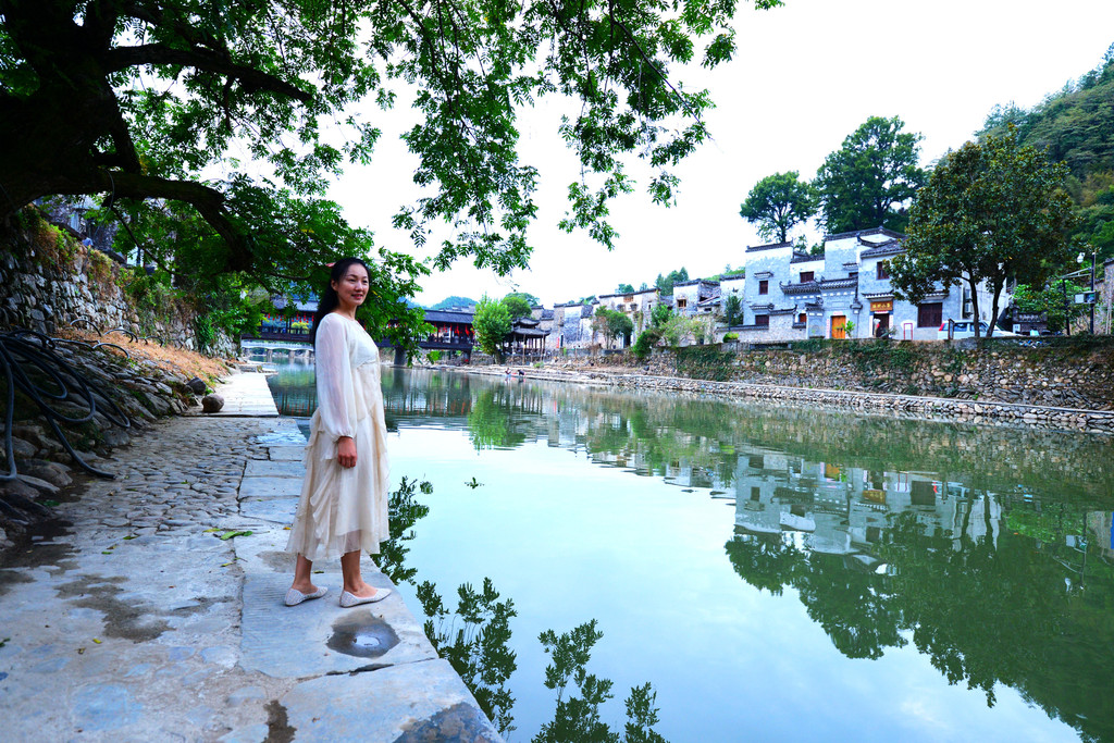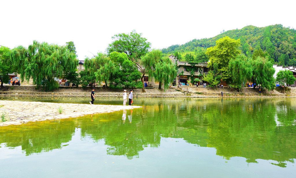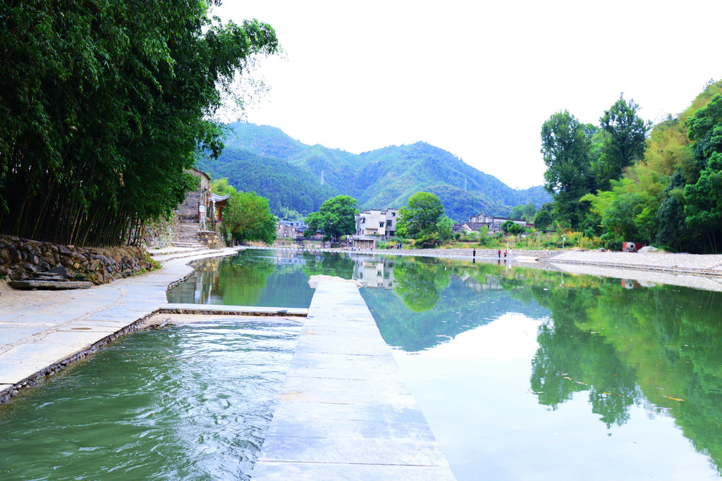 镇子是一河两岸的格局,一汪碧水映青山,徽派建筑掩映在青山绿水中,宛如一幅画卷。