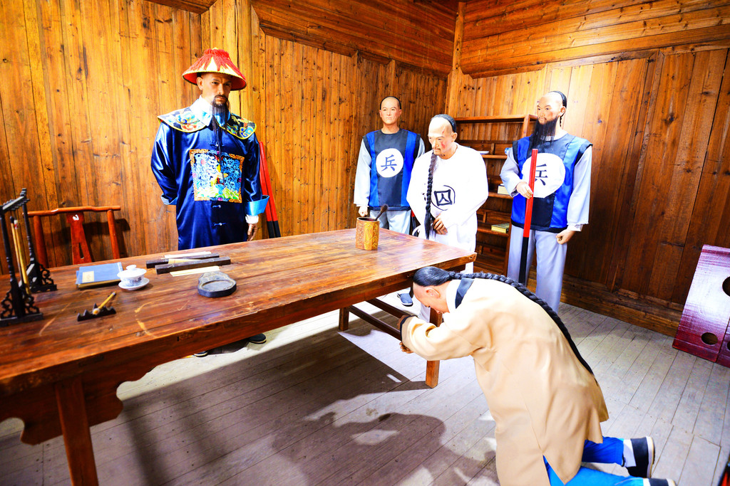 县官的审案台游人是可以坐上去的,那感觉就像自己真做了一回县太爷。