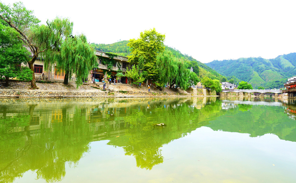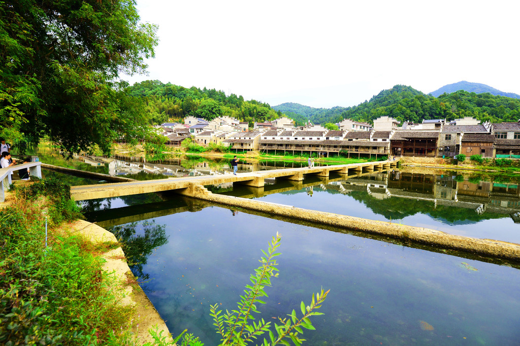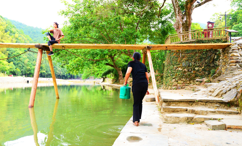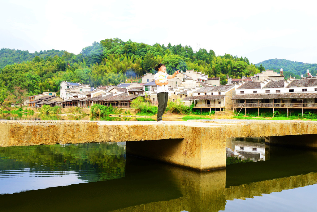 沿着碧波如镜的瑶河前行,有古桥,有古码头,古民居都依河而建,与江浙的古镇风格相似。但是这里背靠青山的优势,你江浙没有吗,这是限定版的江南古镇。