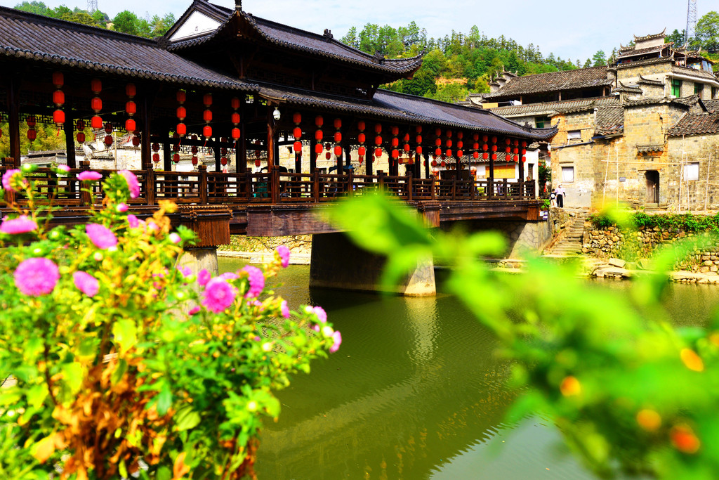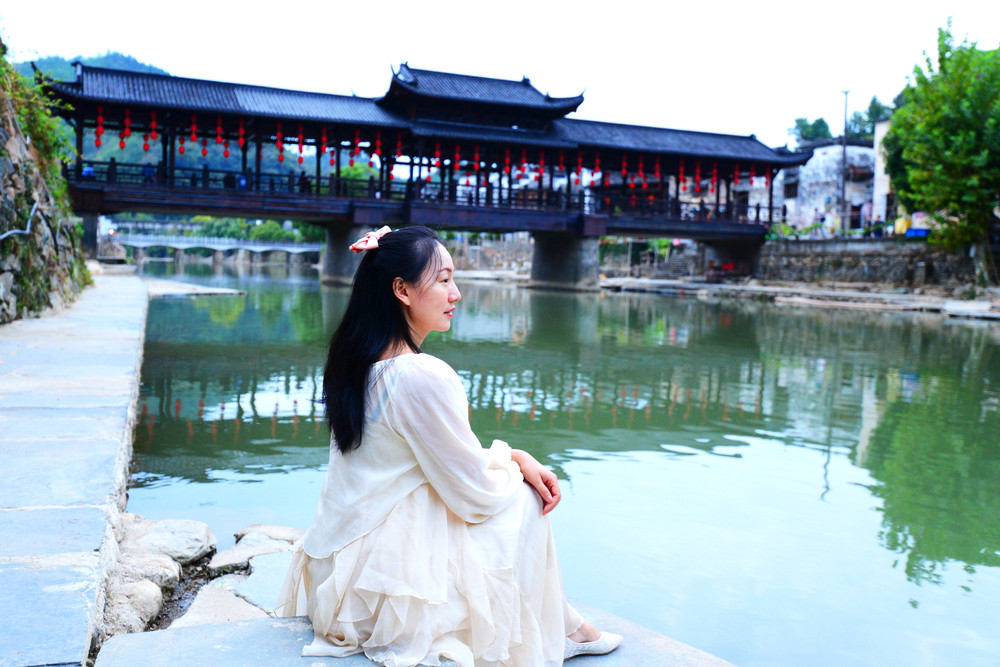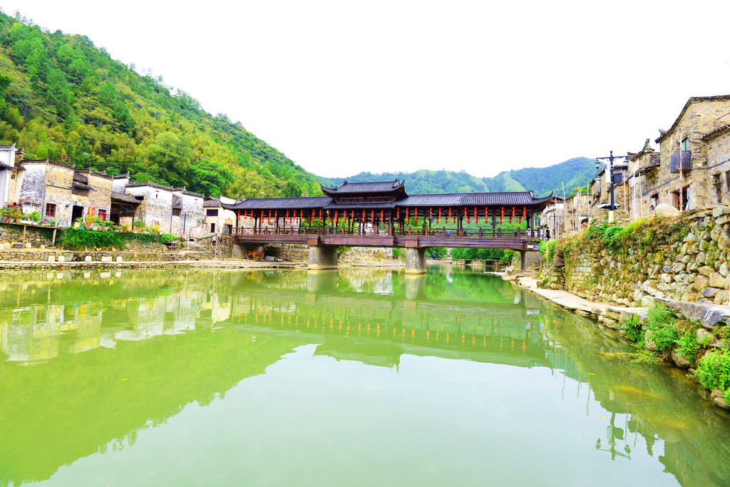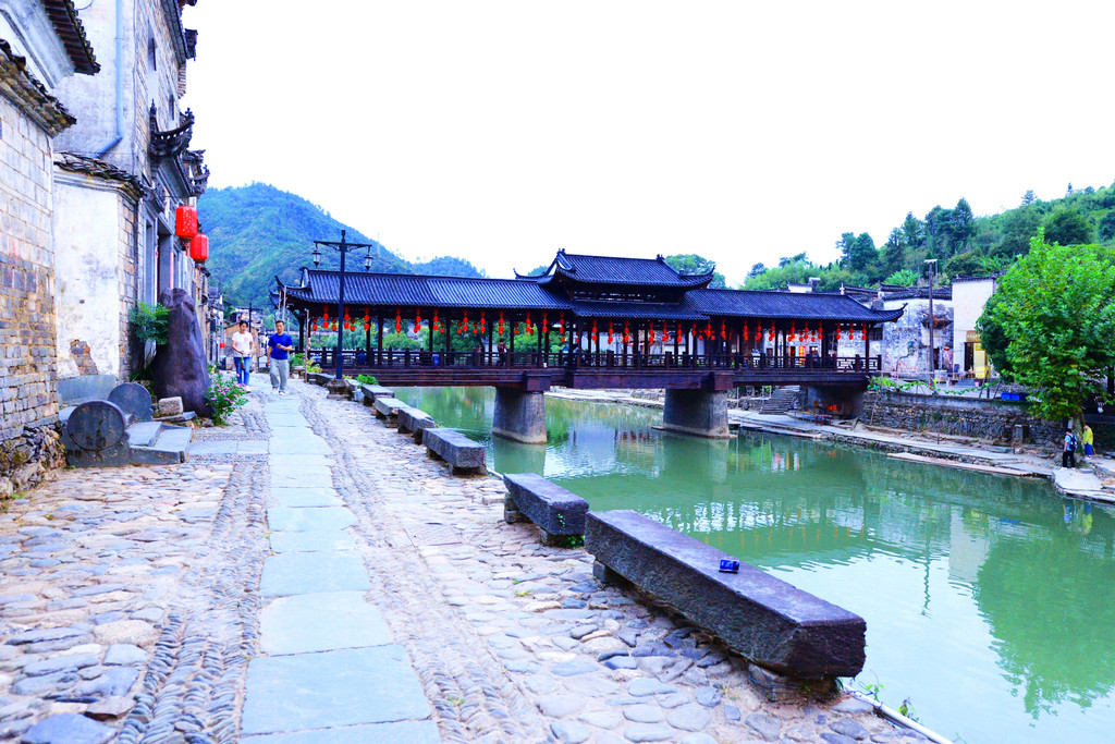 古镇上有座廊桥,游客走累了可来此休息,里面有木凳可坐。夏季,镇上的居民便会来桥上乘凉闲谈。站在风雨廊桥上,还能四顾瑶里的青山绿水。
