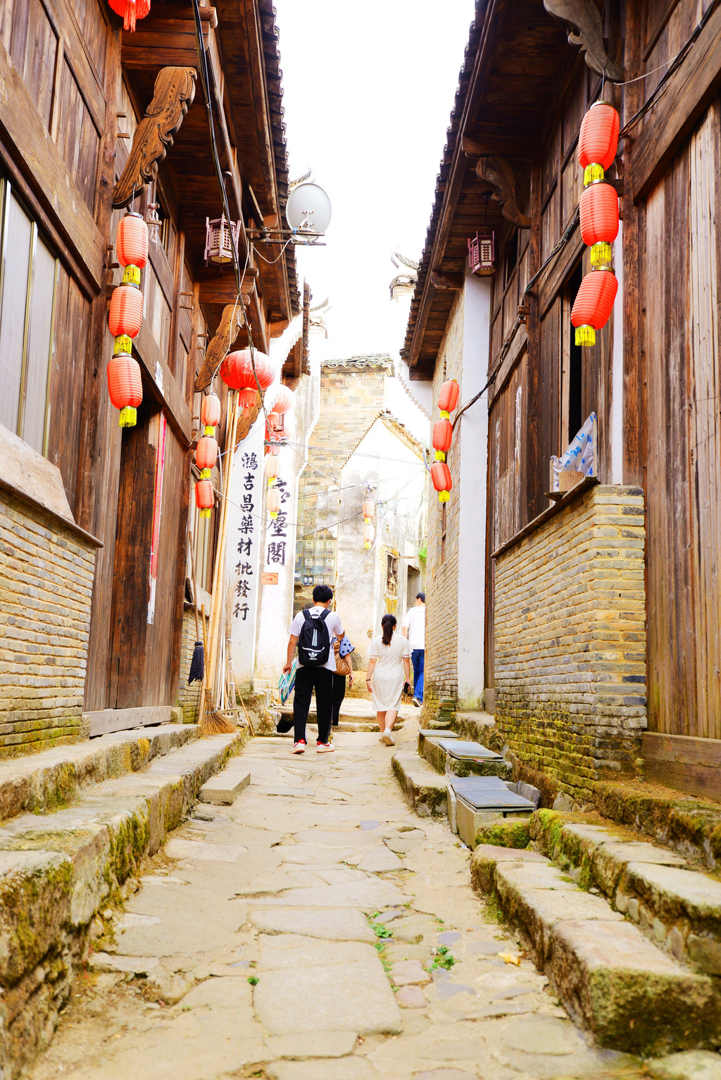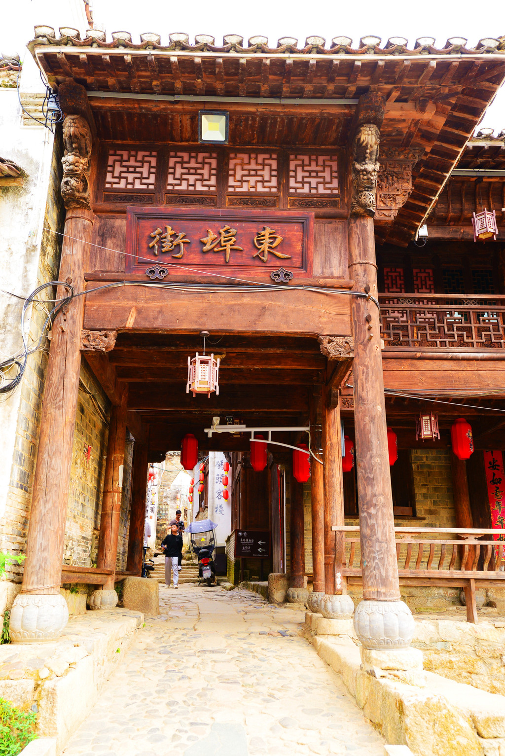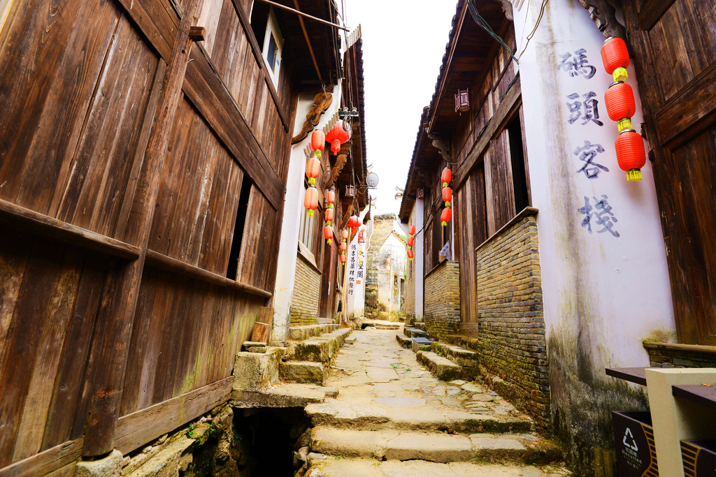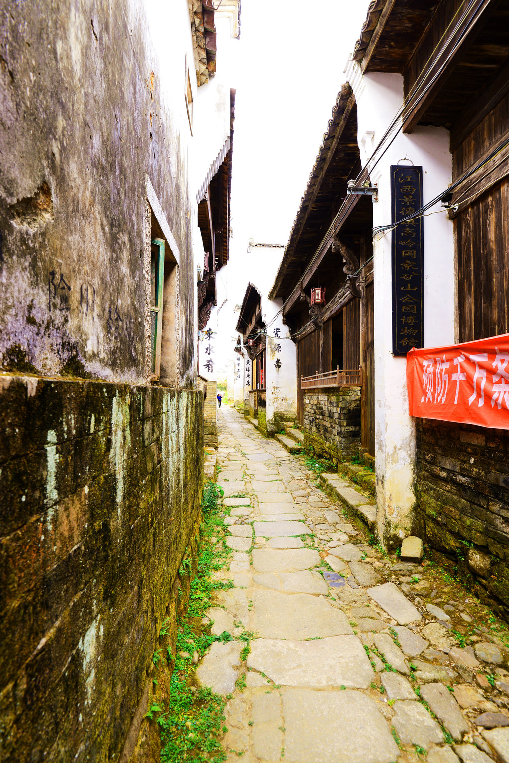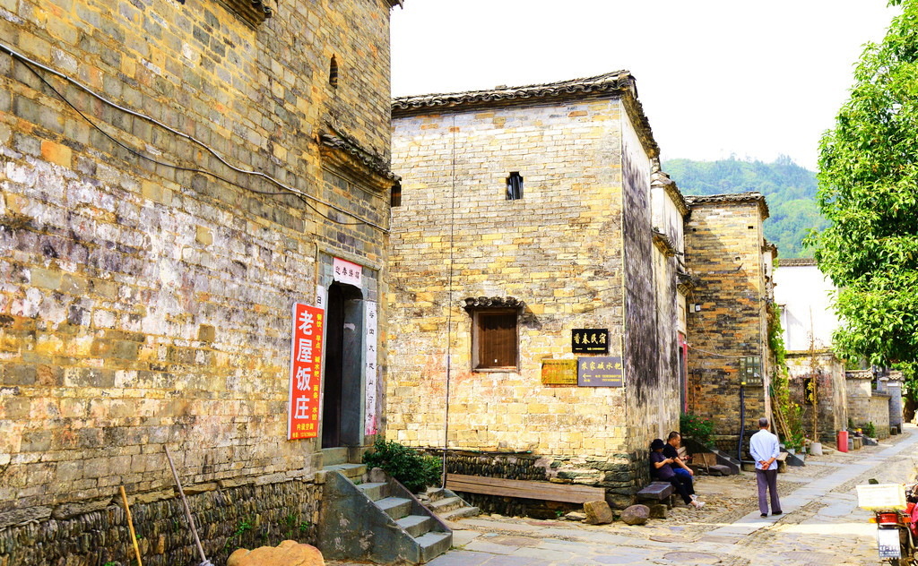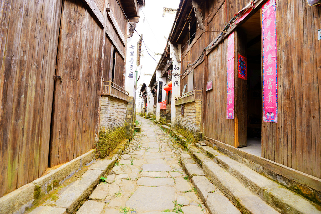 从窄窄的入口步入古镇,一条悠长的明清商业街出现在眼帘,这是徽饶古商道上最为繁华的商业街之一,长千余米,分上街头、中街头、下街头三段,民谣道:“上街头,下街头,街长不见头;丝绸缎,糖醋油,店面八百九”,生动的反映了唐诗中“浮梁歙州,万国来求”的盛世场面。