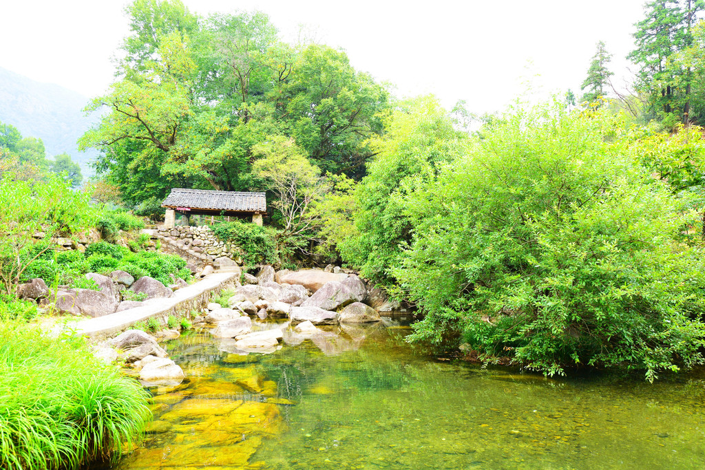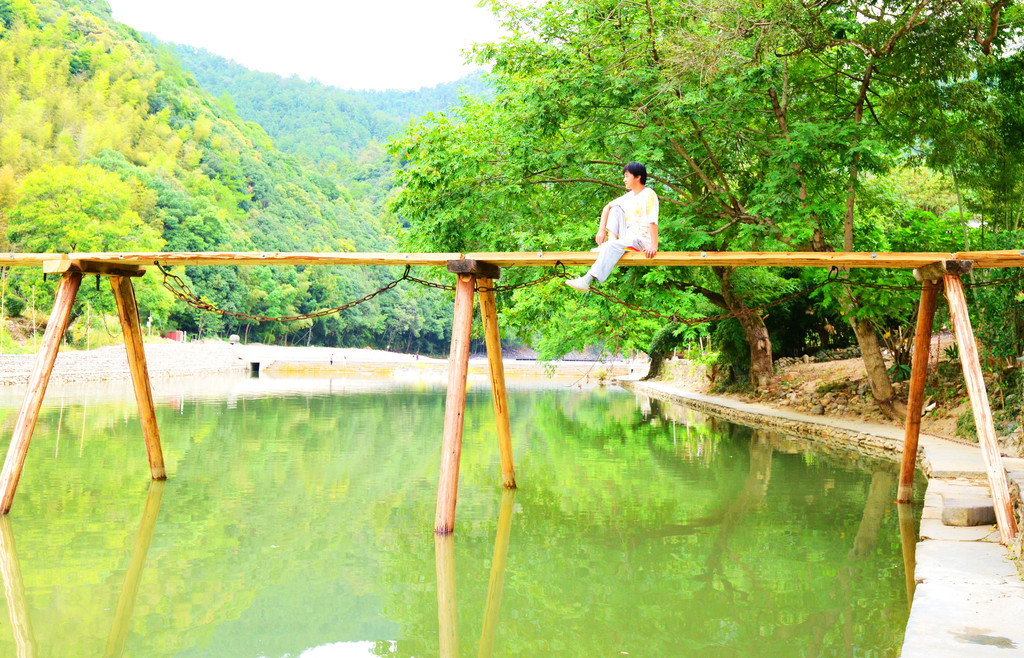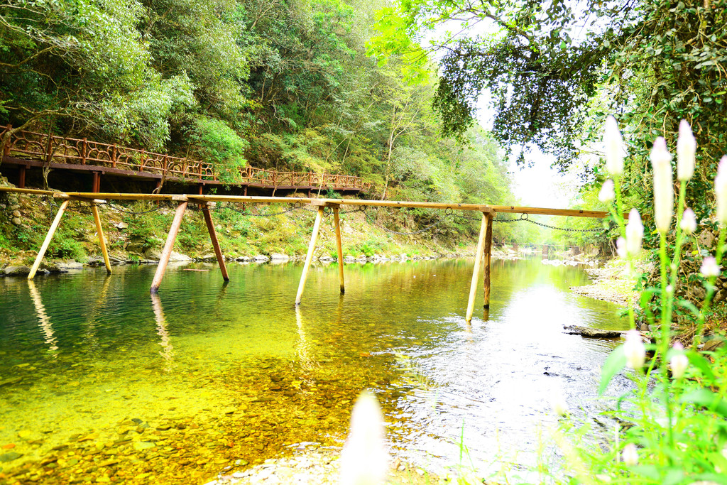 往前走走,又走到了一座木桥,两岸青山相夹,每一步都像走在画中。