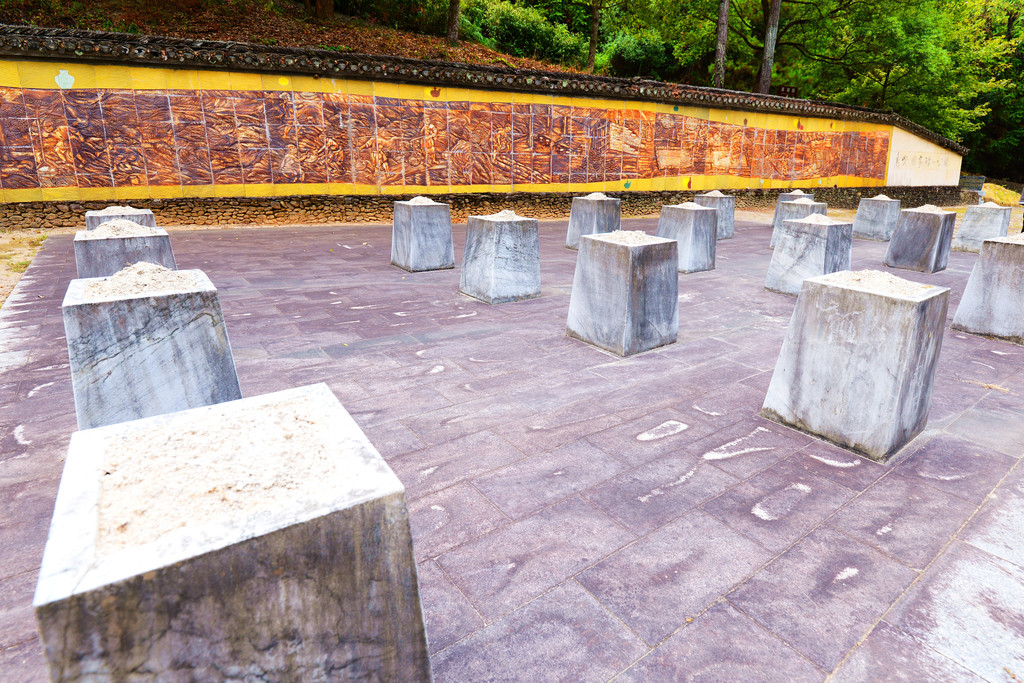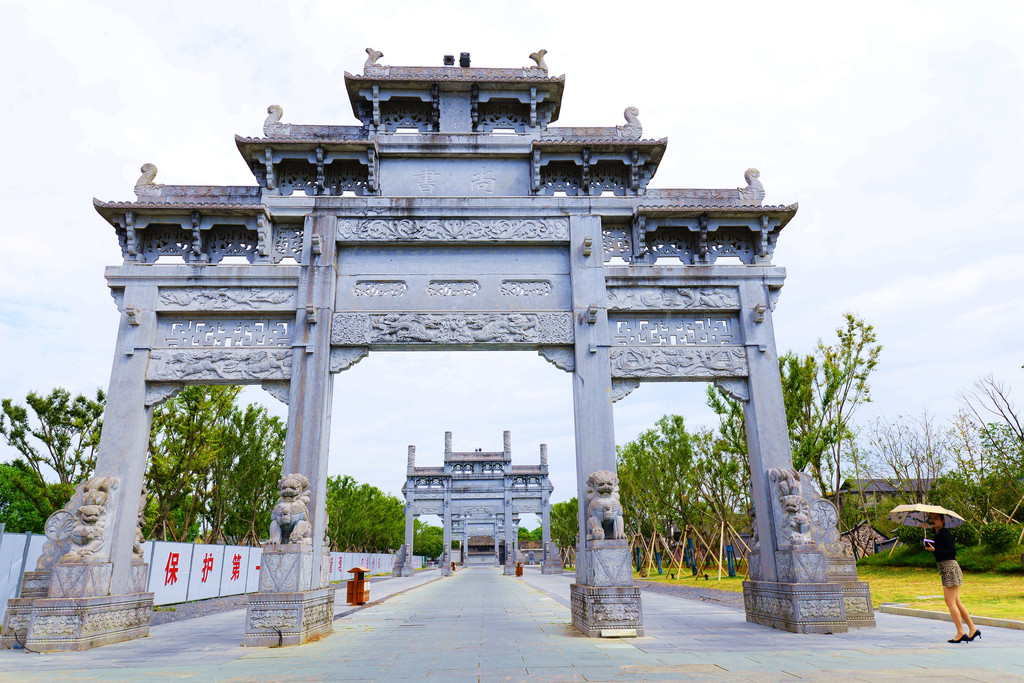由于登不了塔,便往牌坊走去,三座牌坊排列在主道中央,均为三间四柱式。
