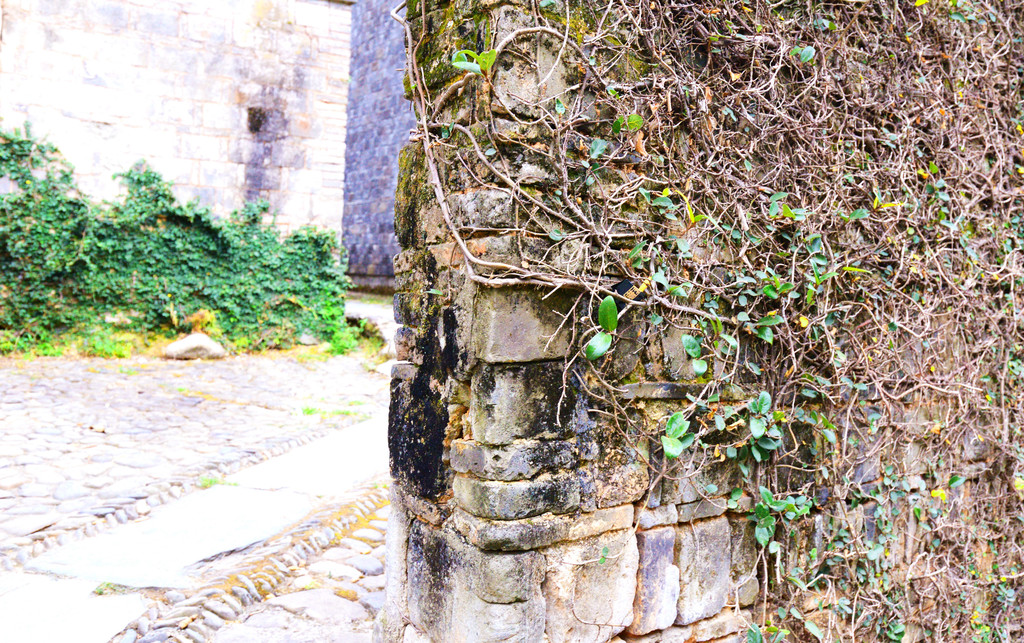 古镇依旧是古时行马车的路,弯弯窄窄深深,至今未曾改变。路面是用瑶河滩上的鹅卵石铺的,高低不平,鞋底薄的走在上面会搁脚,而这里的居民出出进进居然能在狭窄的弄堂小巷里骑摩托车、电动车。有的路段则被踏得平滑、铮亮,深深地印下祖先的足迹,也印下现代子孙前行的脚步。