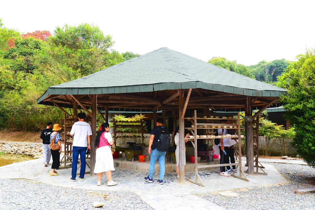主题园中有个园中园,叫乐陶园,直白地说就是现场拉坯,我们很多人玩过,把一团泥巴慢慢地转成一个碗,一个杯子,或者自己想要的形状。小时候天天玩泥巴,我的童年快乐是泥巴给的,只是没有今天这个电动底盘,上次在吉州窑体验拉胚时被师傅评为第1名。