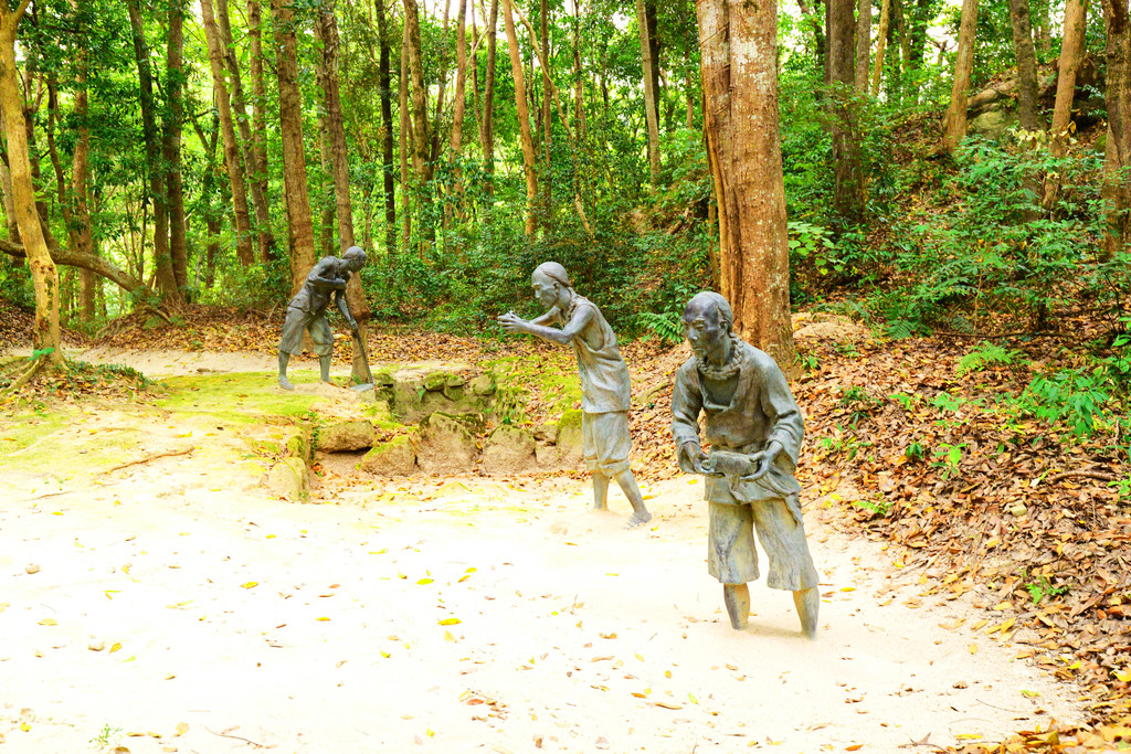 工房里有古代官民的人物塑像,在线办公模式。
