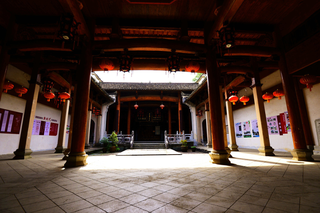 祠堂的正门不开,要走侧门进去。屋梁上有很多关于程咬金的木雕图案,据说,这里的程姓人家都是程咬金的后裔。1938年新四军抗日动员大会便是在这个祠堂召开的。