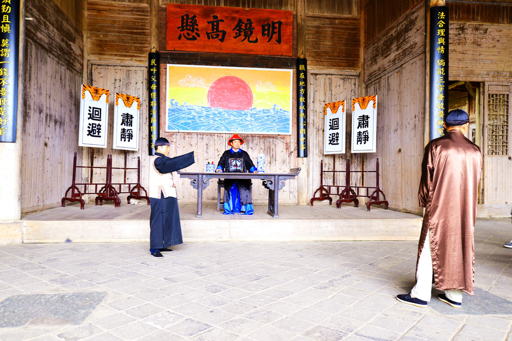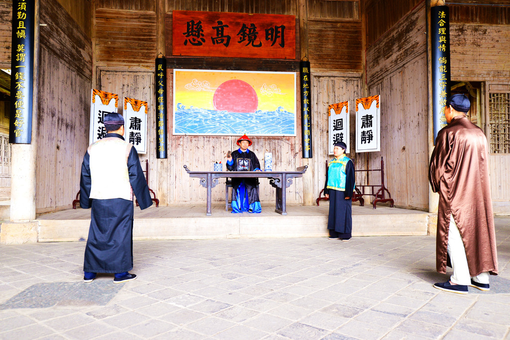 在这里还能看到真人上演古装剧中“公堂断案”的桥段,挺有意思的。每天有4场升堂表演(10:00、11:00、14:00和15:30,供参考),演小偷偷盗陶瓷的断案情节,县官威风凛凛。看表演无需另外付费。