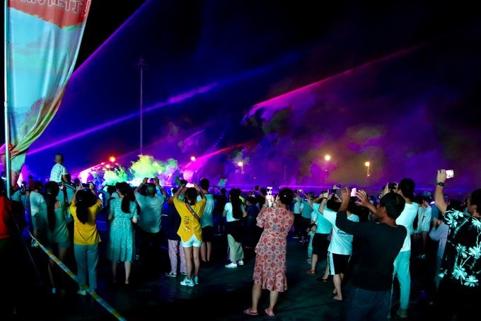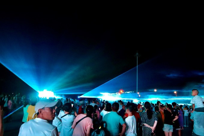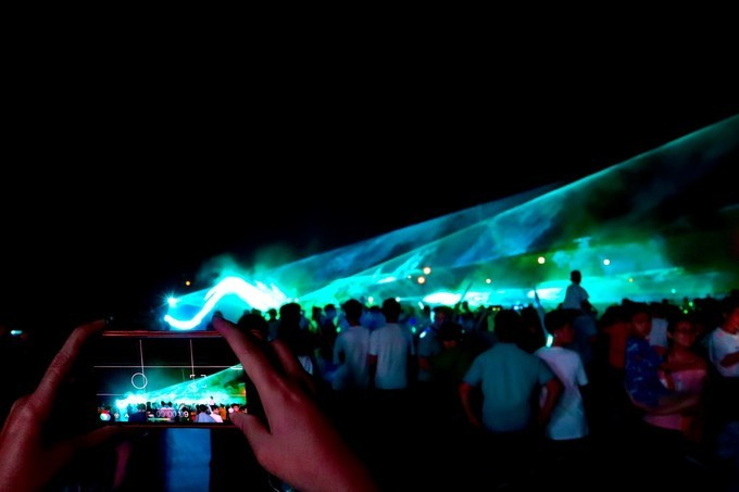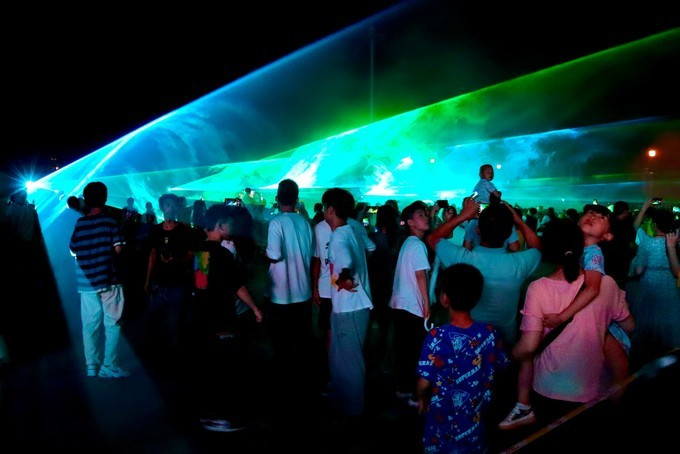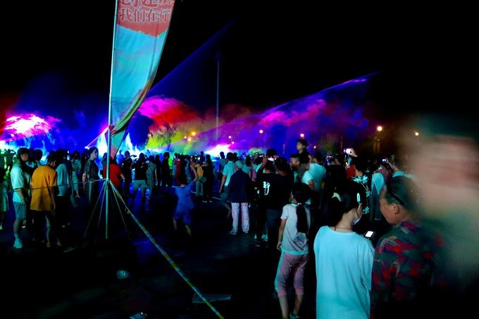 最震撼的是现场演绎了一场奇幻极光夜影视觉盛宴,以高科技手段在人们的上空,铺设出不同色泽的漫天极光。
