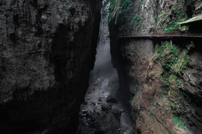 谷底至峰巅间的落差达700多米,人在其中的渺小,只有进入地缝区域才能深刻感受到。
