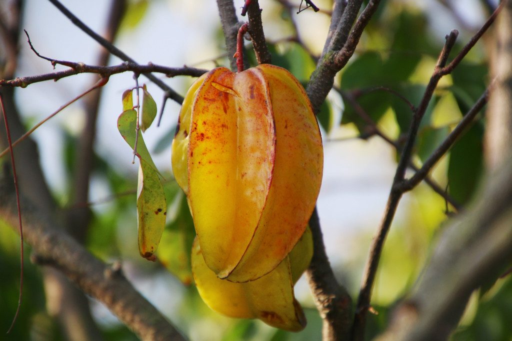 杨桃,旺季已过,漏网之桃,敢摘,腿打折。