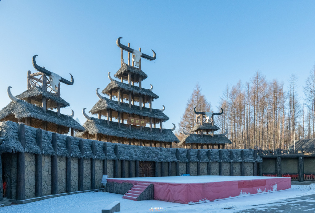 萨满祈福堂和讷殷博物馆里有曾经古人祭祀的场景、讷殷部族谱、万字炕、思努树、婚嫁、萨满祈福、剪纸画等场景,形象再现了当时满族人的生活方式和状态。
