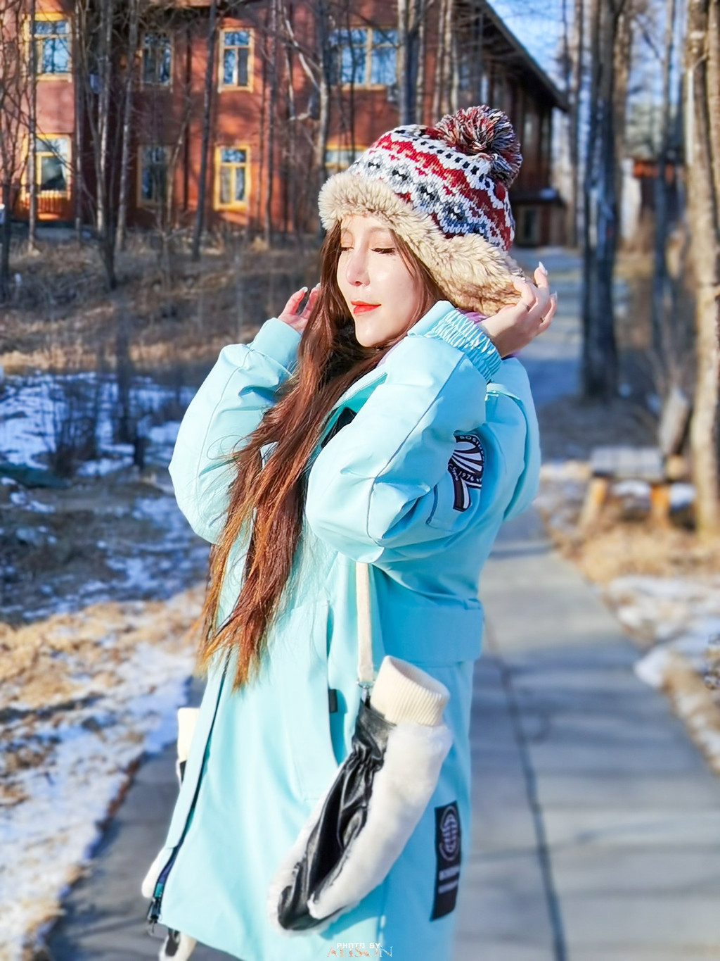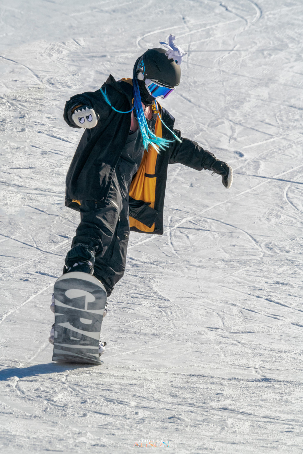 滑雪萌新最喜欢的就是摆拍各种好看的照片了,特地选了个涂鸦风格的滑板,还有亮sei的滑雪服