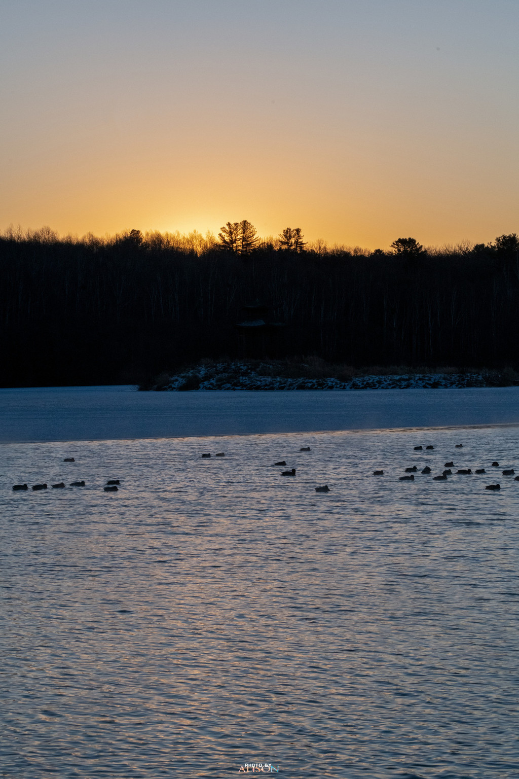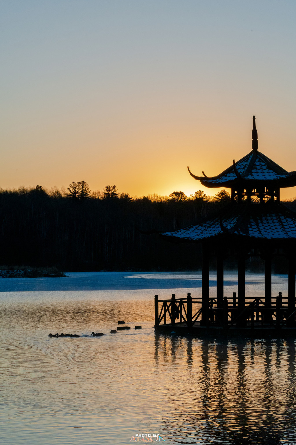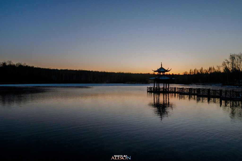 又是睡眠不足的一天 为了拍日出我们当晚就约定了第二天早上6:30出门。从别墅区徒步15分钟走到湖边,看着远处的太阳逐渐升起,天空逐渐由蓝变黄