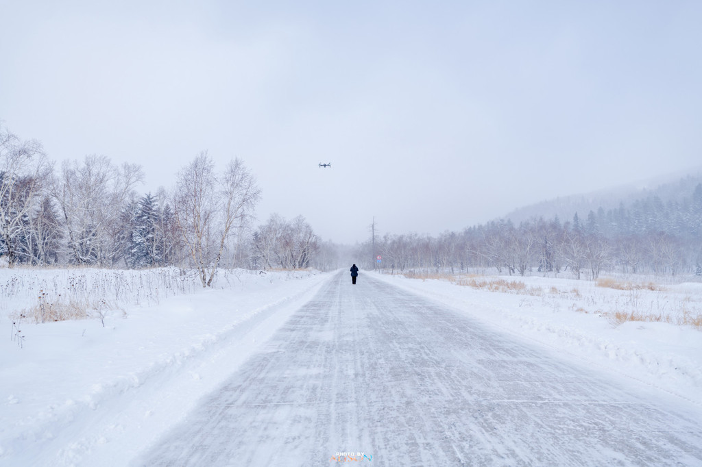 道路两旁厚厚的积雪,我一脚下去雪直接没过膝盖。你可能会问雪都没过膝盖了,冷吗?反正我觉得不冷,因为我耐寒而且很兴奋也不觉得冷