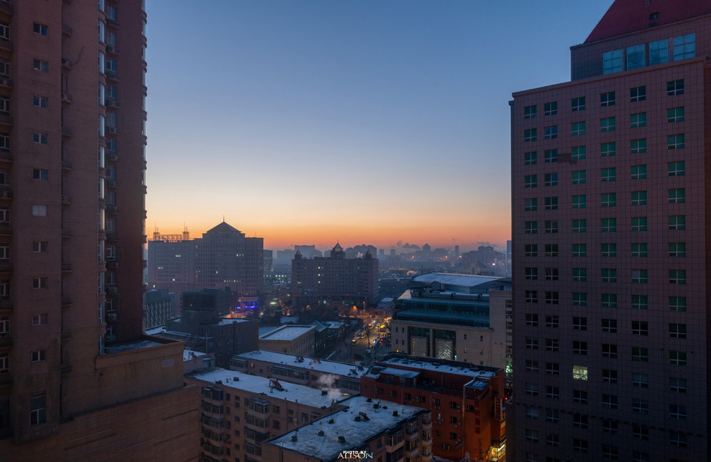 我住在 长春 市市中心人民广场附近的亚泰饭店,从人民广场前往净月潭景区搭乘地铁需要差不多1个小时,所以当天我特地早早起床,拉开房间窗帘那会天才刚刚微微亮,远方的天空日出的光芒逐渐驱散黑暗,这大概是城市最柔和的样子了。