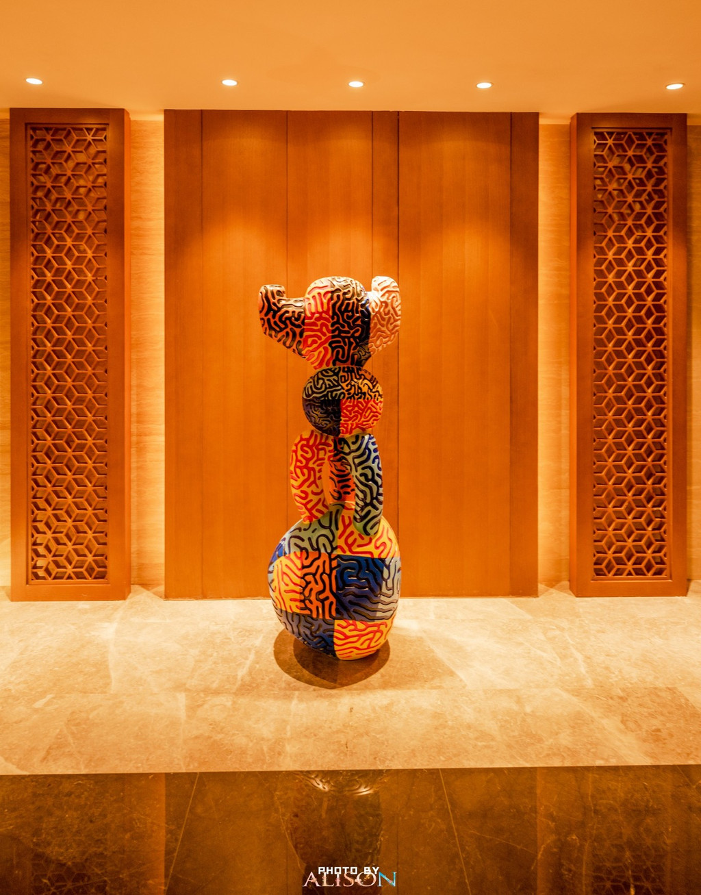 酒店大堂明亮宽敞,室内摆件丰富且生动,造型简洁也不失雅观