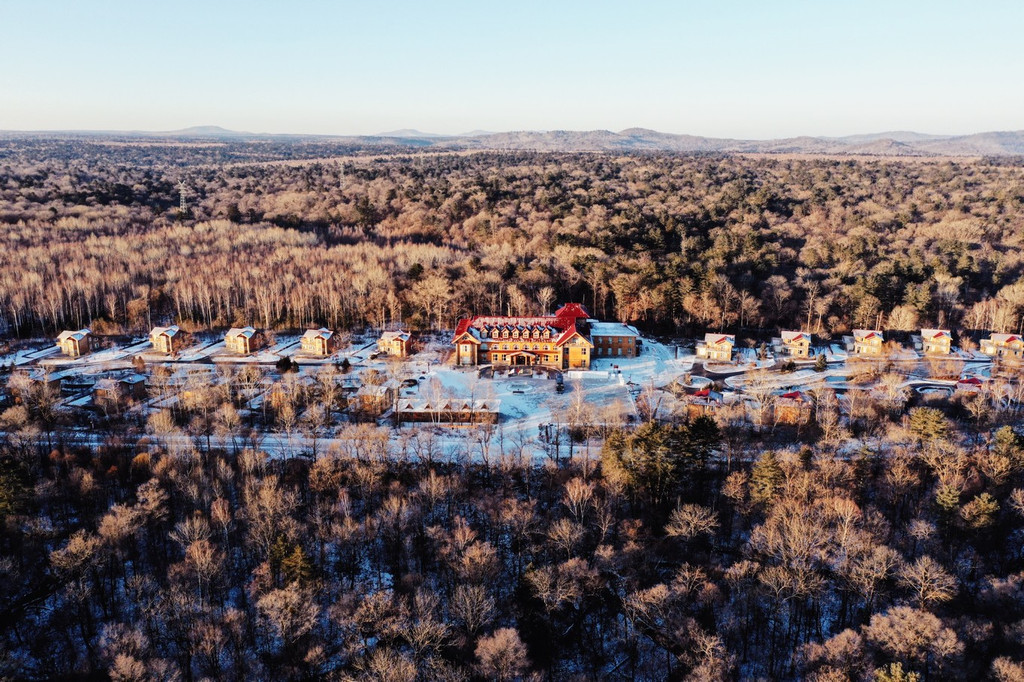 露水河国际狩猎场坐落于长白山露水河国家森林公园内,距离长白山主峰约60公里,海拔450至1100米。里面拥有会议中心、度假区等,还可以体验冬漂、狩猎等。