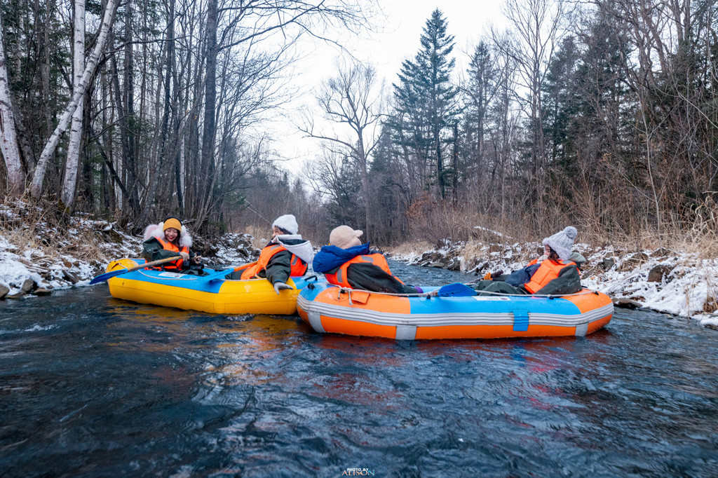 这次我们到露水河国际狩猎场,重头戏就是体验冬漂。作为南方的孩子,这个体验也真是忒特别了😄毕竟漂流这种娱乐项目一般只会在夏天体验👍这里的漂流也被称为是奢侈的矿泉水漂流,因为这里也是农夫山泉水源地和工厂所在地。长白山与阿尔卑斯山、高加索山并称为世界三大黄金水源地,这里的水是品质极好的矿泉水。