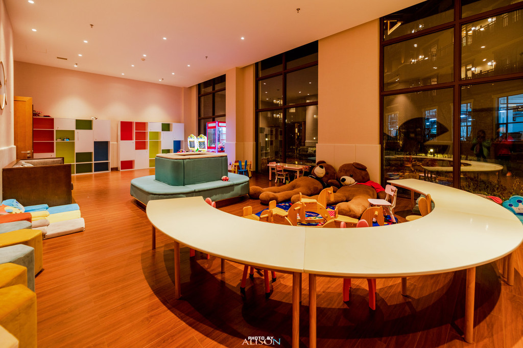 酒店内的儿童活动区域位于大堂后方的电梯旁边