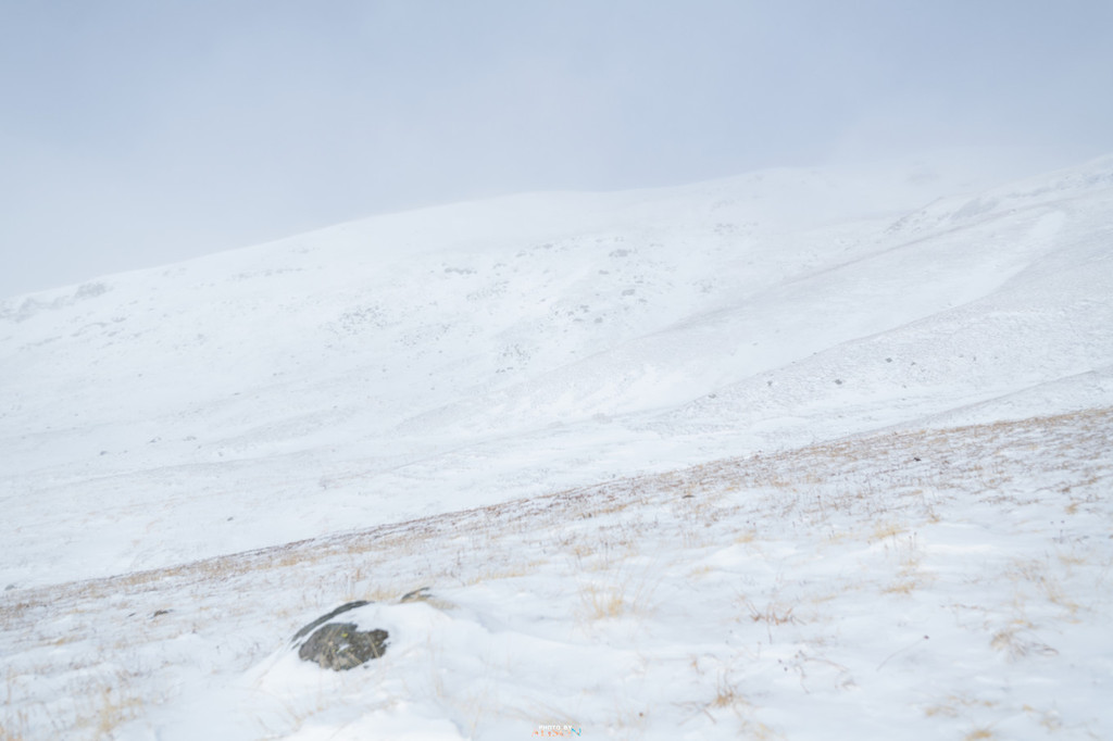 乘坐景区接驳车上山的路上,从一开始的阳光明媚逐渐进入到风雪中,考虑到安全因素,我们的大巴车在半山腰位置停下来,我们全部下车等候换乘中型巴士上山,等候的间隙大家都开心地玩起了雪