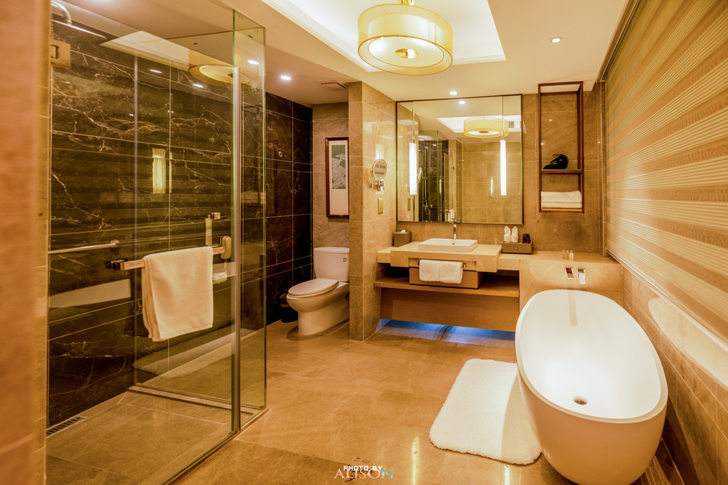 走进大堂办理入住拿到房卡后凭房卡刷电梯上楼即可。我这次入住的是豪华大床房,房价十分便宜,房间面积还可以,当然主要是十分干净,卫生间面积较大,干湿分离带浴缸,进门桌上有迎宾水果,整体性价比还是不错的
