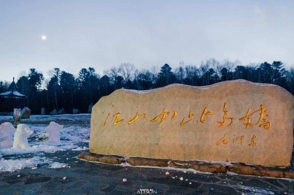 当天前往狩猎场体验,太阳已经落山,路过“江山如此多娇”的石刻摁下快门