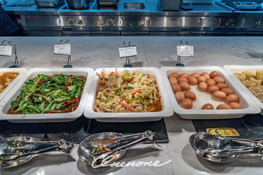 自助早餐同样品种丰富,涵盖了中式热菜、西式包点、水果饮品。友情提醒,因为入住宾客大多都会早起前往滑雪场或长白山景区游玩,所以早餐要赶早来吃,不然可能会出现短暂的排队等位情况,你要知道,冬季的长白山鲁能胜地瑞士酒店度假村本来就是一房难求。不过服务人员收餐保洁和补充菜品的意识和响应速度相当迅速,所以不必太担心来晚了。