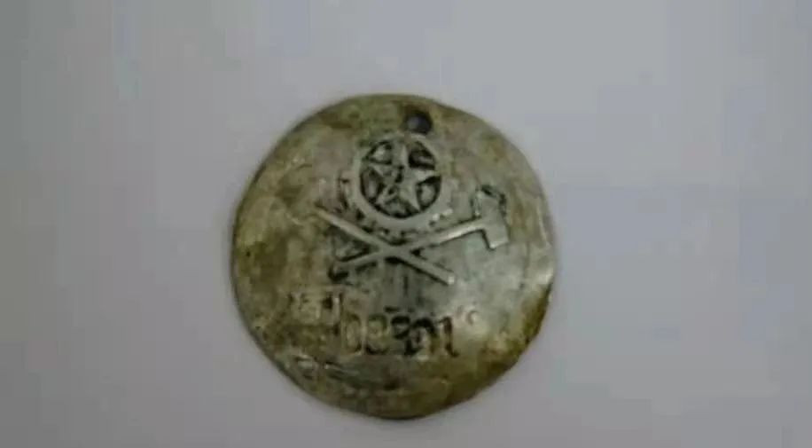 下图中的是一块见证着历史的金属牌,曾经进山的矿工每人都有这样一块金属牌,牌子上没有任何姓名信息,只有一个专属号码,上工喊号、吃饭喊号、发工钱喊号……就是这块牌子和号码代替了姓名,成为第一代可可托海矿工们唯一的身份象征。