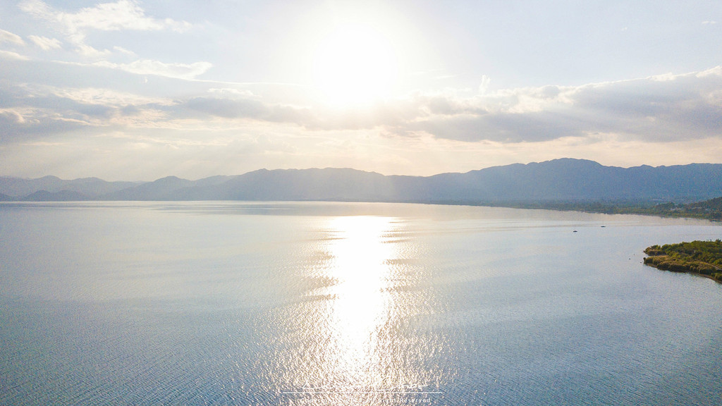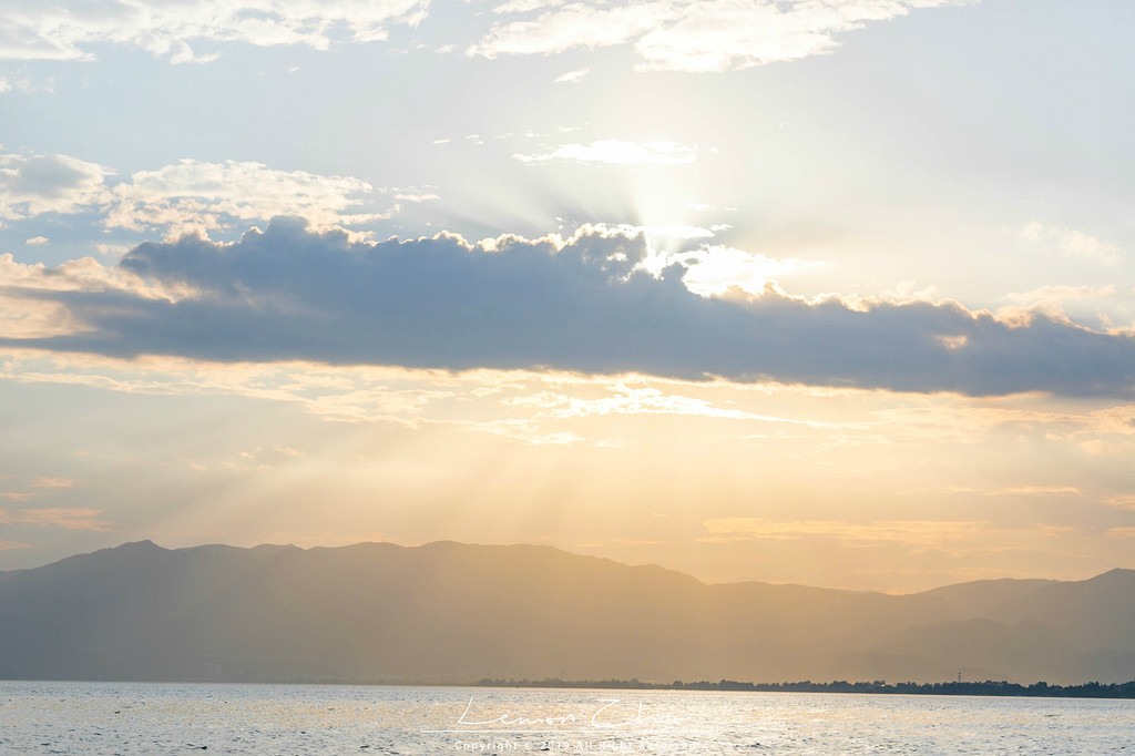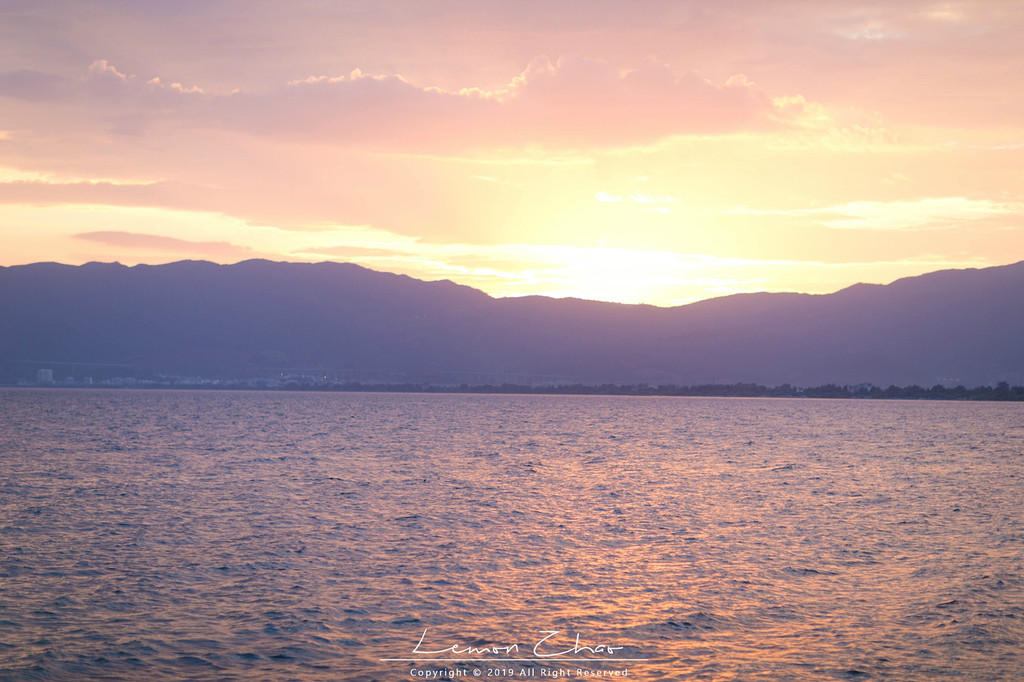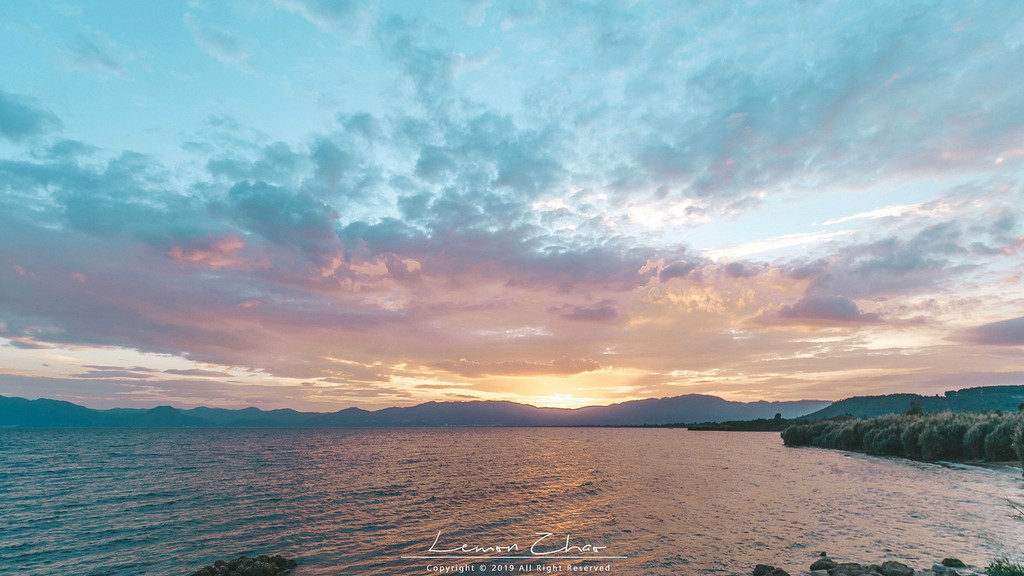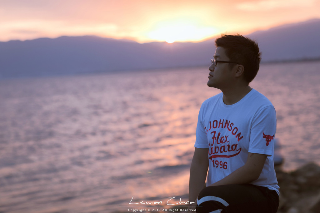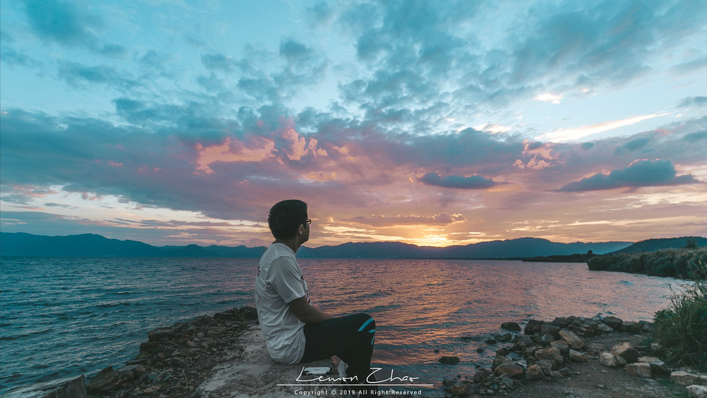 云南这边的日落时间会比较晚,一般要到晚上八点左右,我们到的时候差不多刚刚好。趁着天色还不是太晚,日晒也不是很强烈,在湖边拍一些带有蓝天白云的照片就可以安安静静地等待落日了。这次,我终于知道什么是让人感动的落日了。