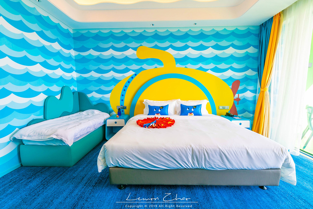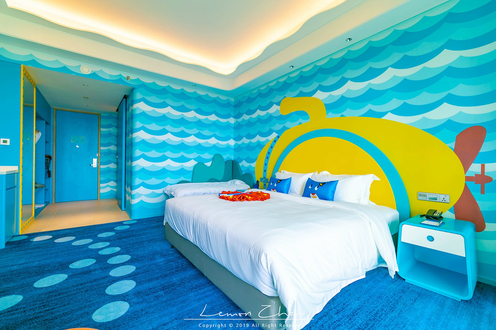 推开房门,就迎来了属于我的海洋城堡,整个房间都充满了童话元素,仿佛就置身于一个奇幻的童话世界。因为整个酒店主打的都是亲子度假酒店,因此每个房间除了一张舒适的大床之外,还有一个给孩子睡的小床,真的太可爱了。