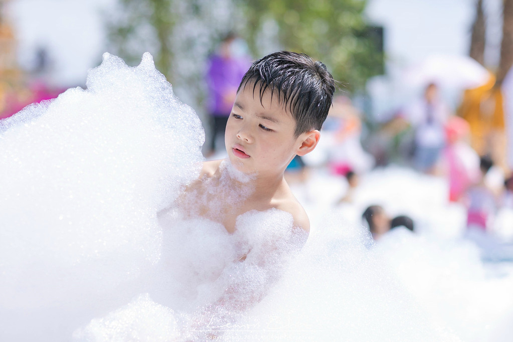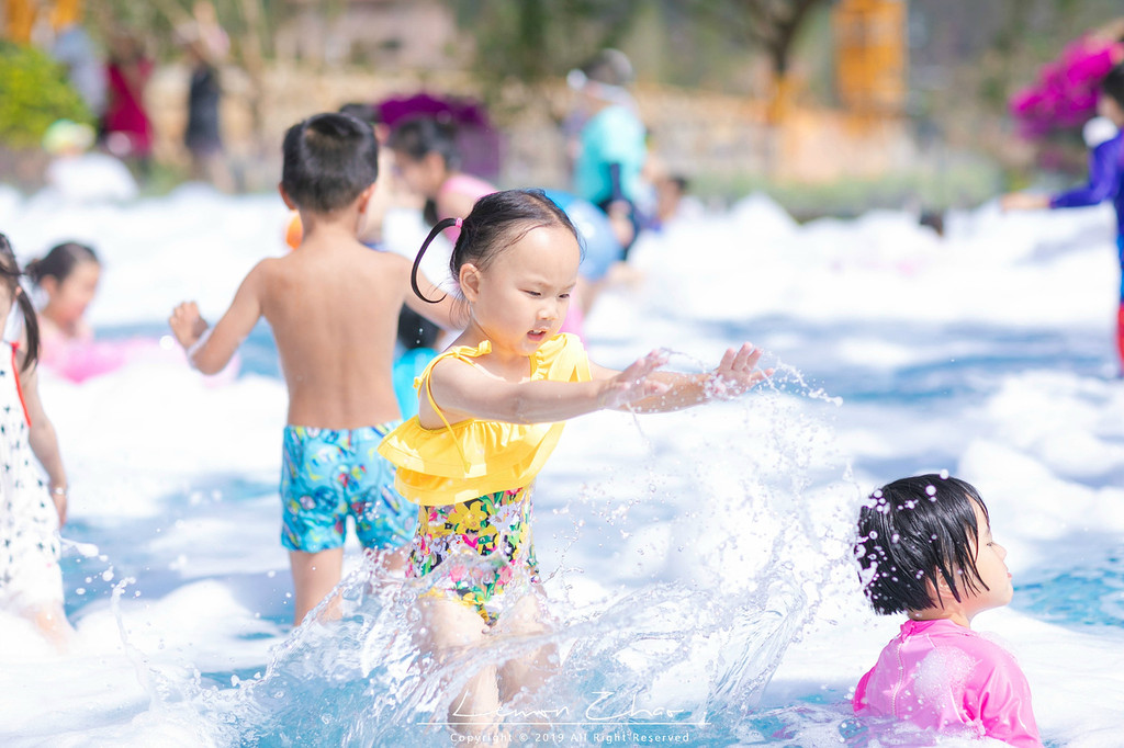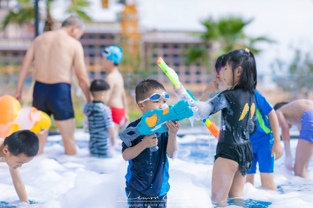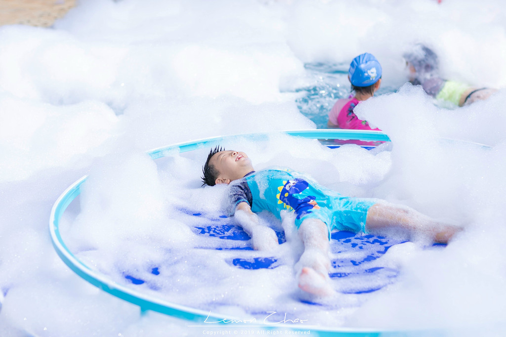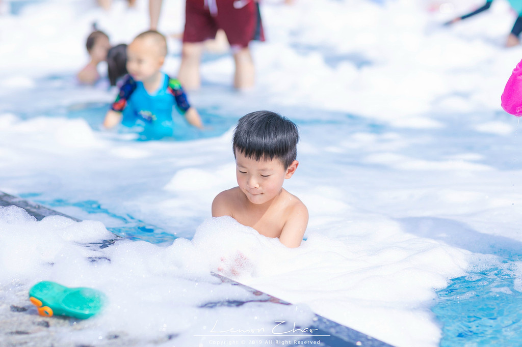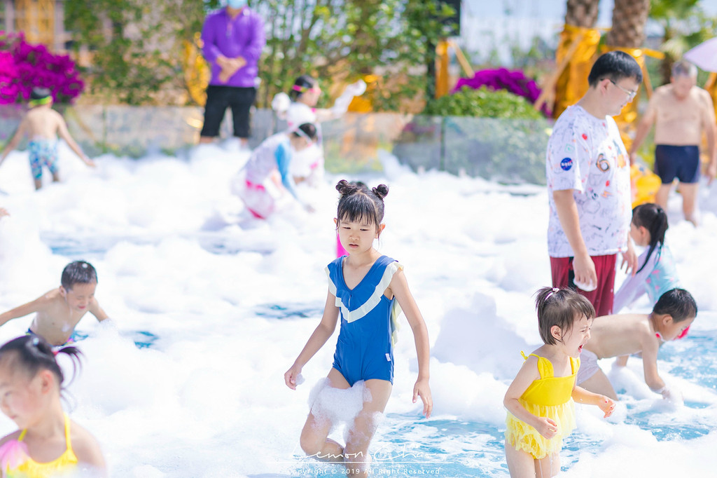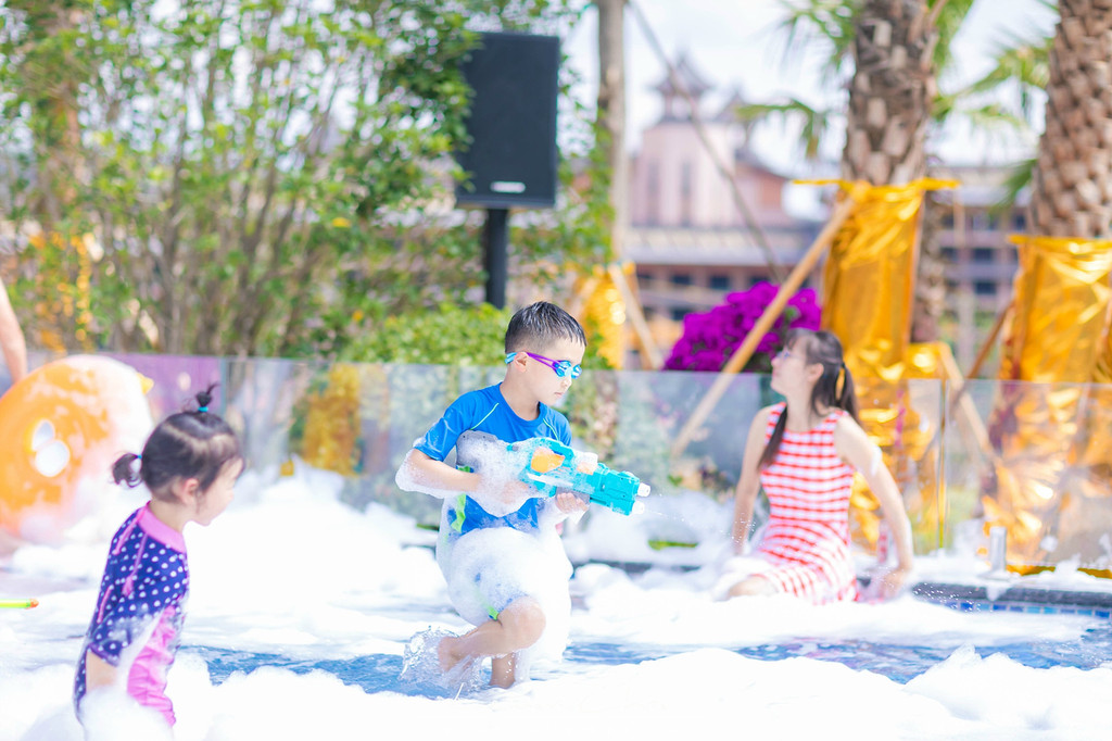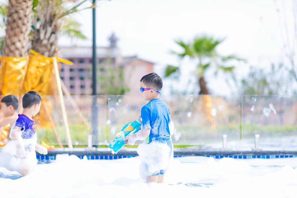 到了下午在酒店的无边泳池还举办了泡泡狂欢的泳池派对,受到了孩子们的喜欢。一群群天真可爱的宝贝们换上了泳装,在水池中尽情地玩耍,泡泡在天空中幻化成绚烂的彩虹,与孩子们的欢声笑语交织相融,成为了城堡中最美妙的音乐。