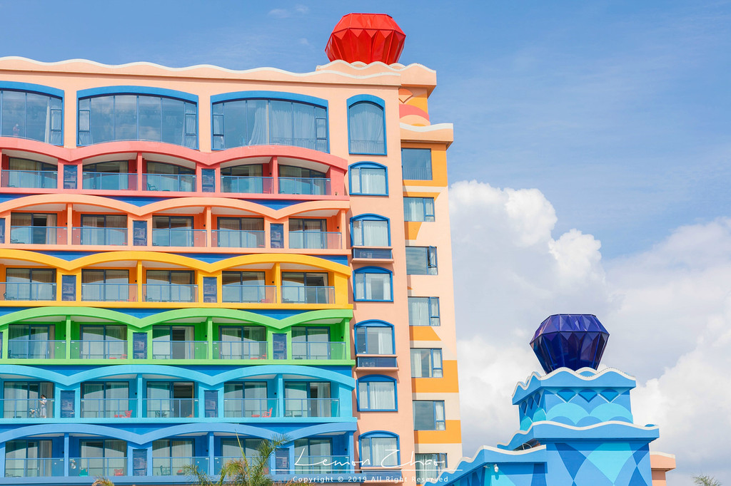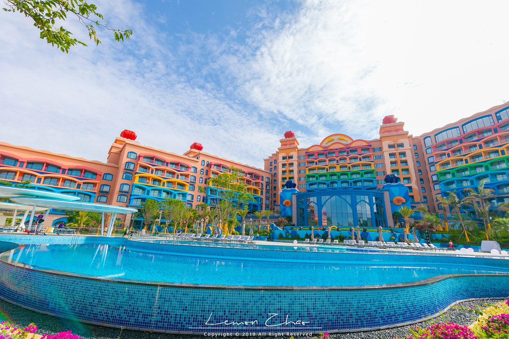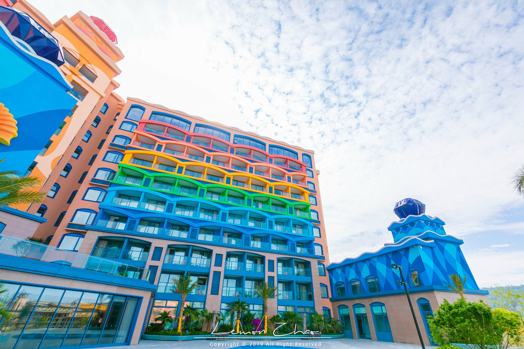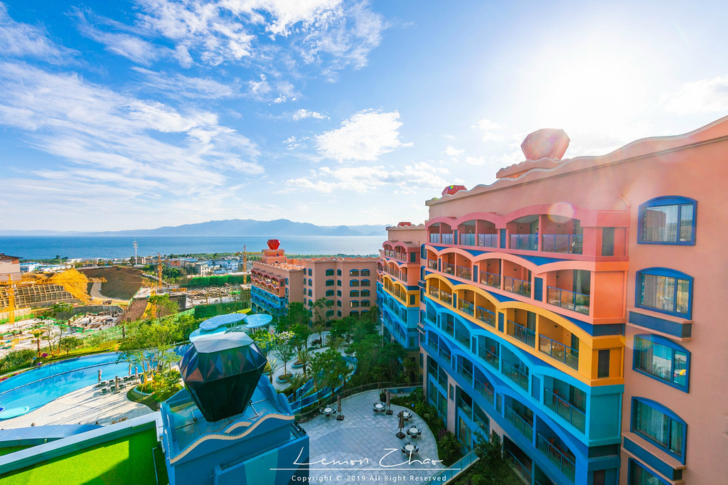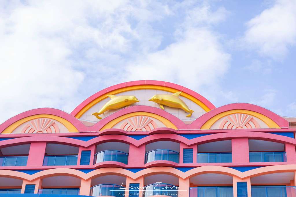 在车上昏昏沉沉地睡着了,当我在醒来的时候,车窗外就出现了一座五彩的城堡,没错这就是我这次专门预定的“海豚湾酒店”,低落的心情也瞬间明朗了起来,也对这次的行程充满了期待。