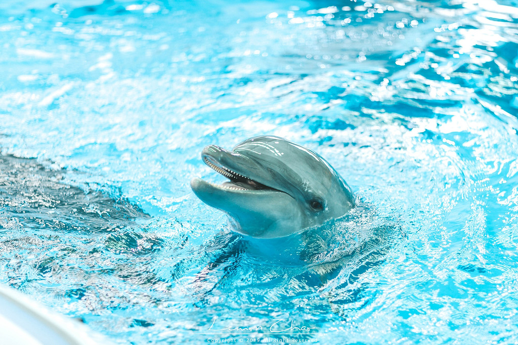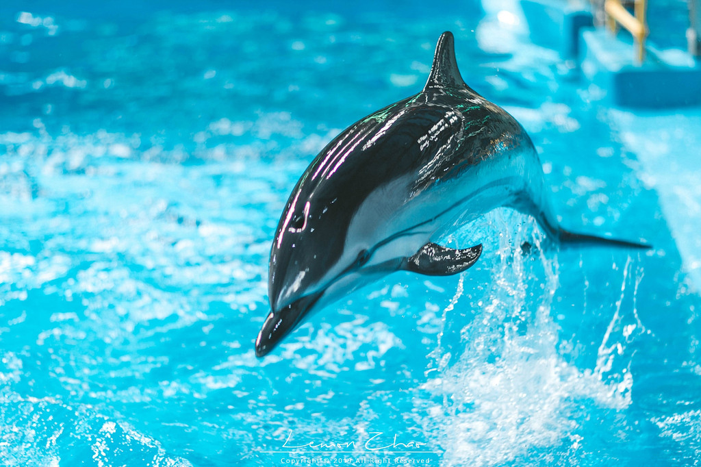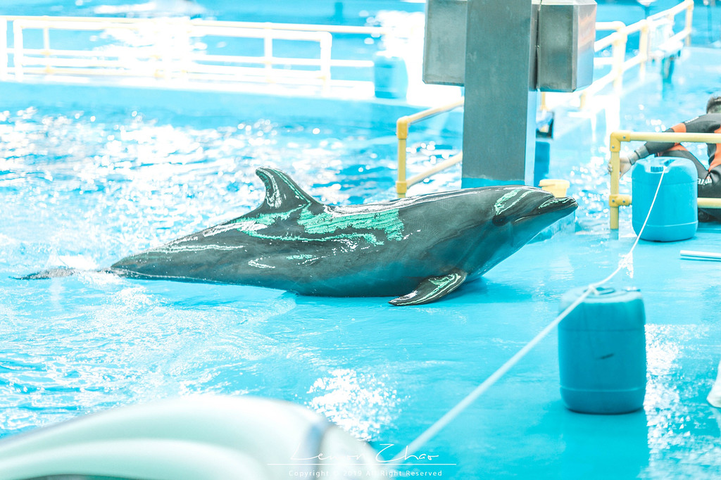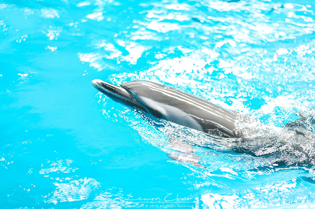 进入海豚之家,首先要换上防水的套鞋,然后经过层层消毒才可以进入海豚的生活场所。正好遇到了海豚的演出时间,还没等我们缓过神来,一只海豚就猛然跃出水面,得有五六米之高,碰到了顶上的红球,这瞬间的爆发力真的太惊人了。还有各种叹为观止的海豚表演,整个现场水花四溅,引得游客尖叫连连,都被这群来自大海的声音深深地吸引。
